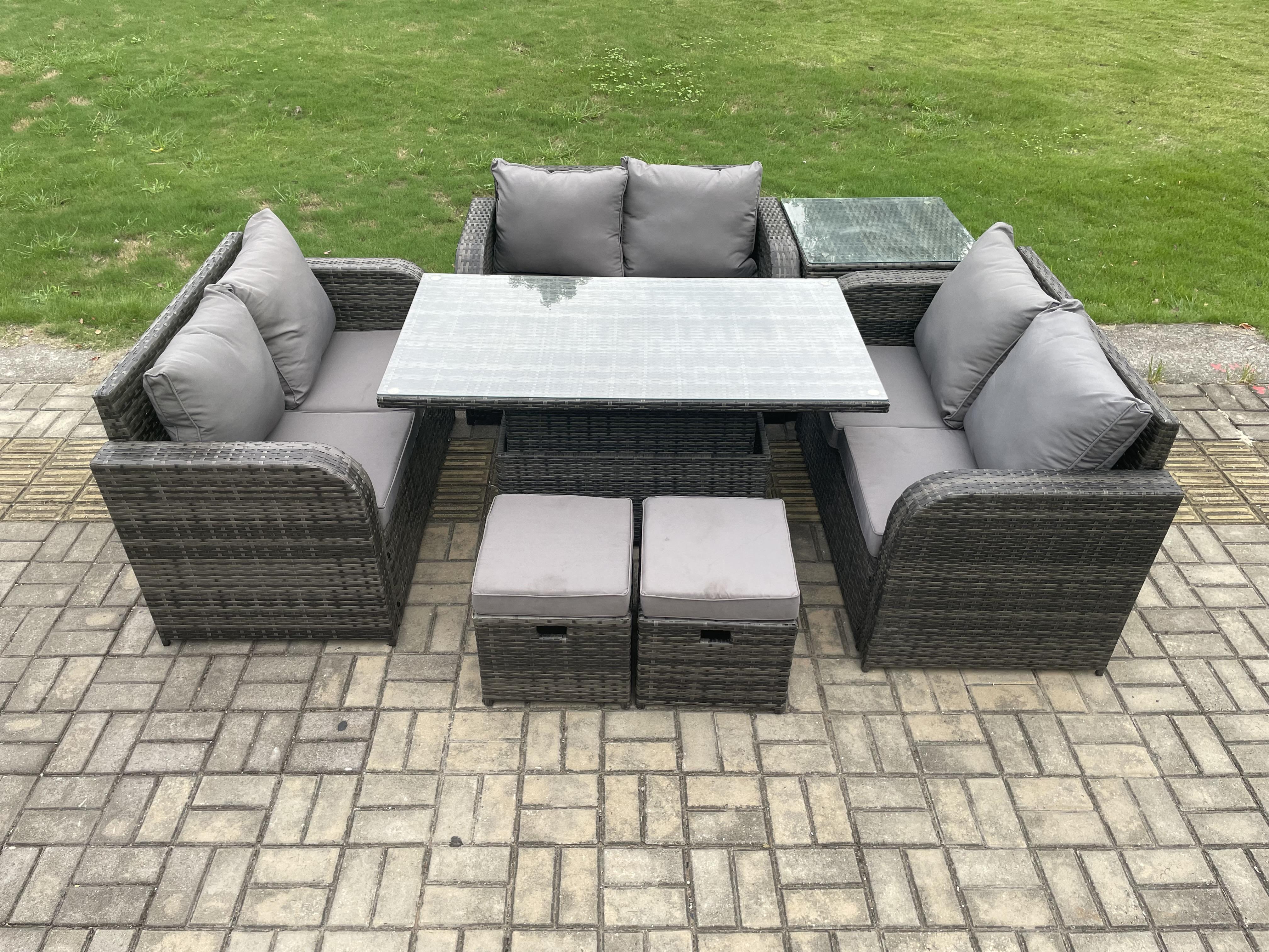 8-Sitzer Polyrattan Gartenmöbel Set mit Esstisch Hocker Sofa