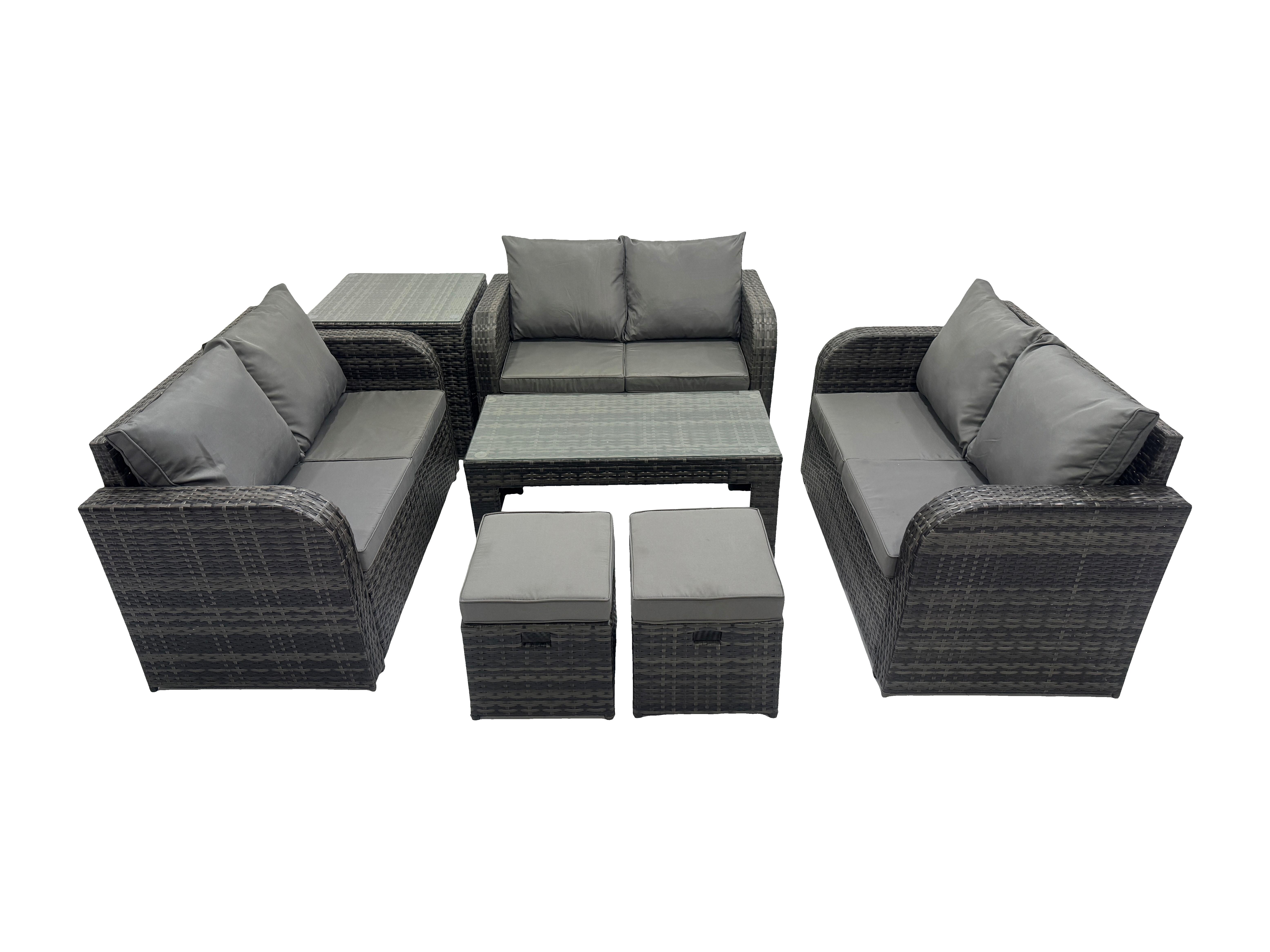 8-Sitzer Polyrattan Gartenmöbel Set Patio Sofa Set mit Couchtisch Loveseat Sofa Beistelltisch 2 kleine Fußhockern Dunkelgrau Gemischt