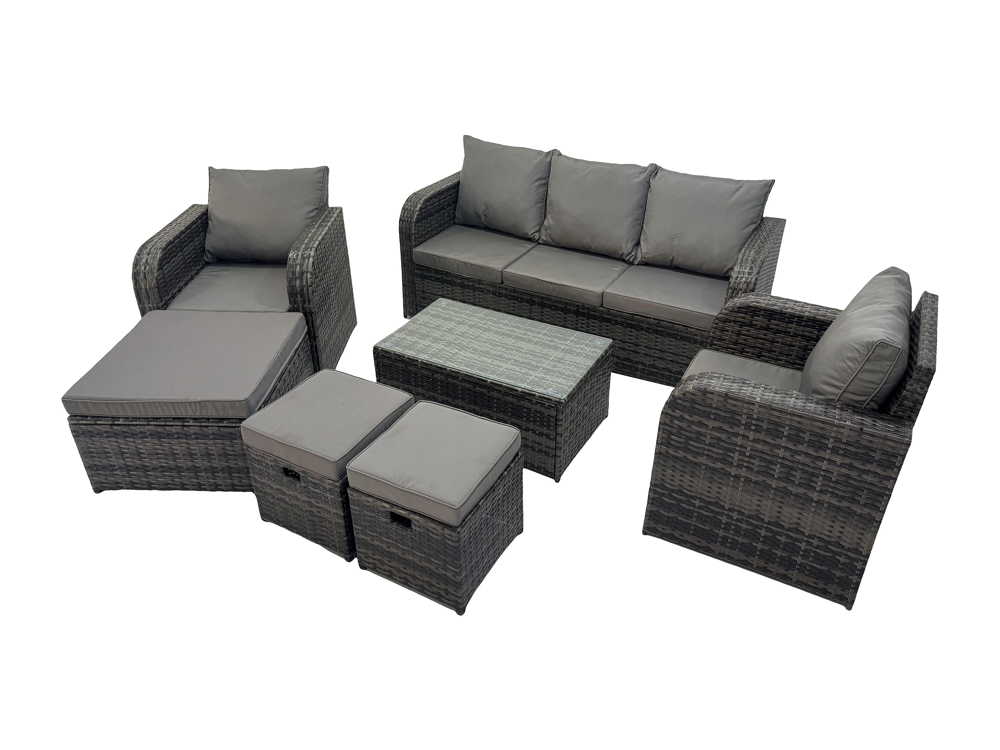 8-Sitzer Polyrattan Gartenmöbel Set Polyrattan Garten Sofa im Freien Set mit Rechteckiger Couchtisch 3 Hockern 3-Sitzer Sofa Dunkelgrau Gemischt