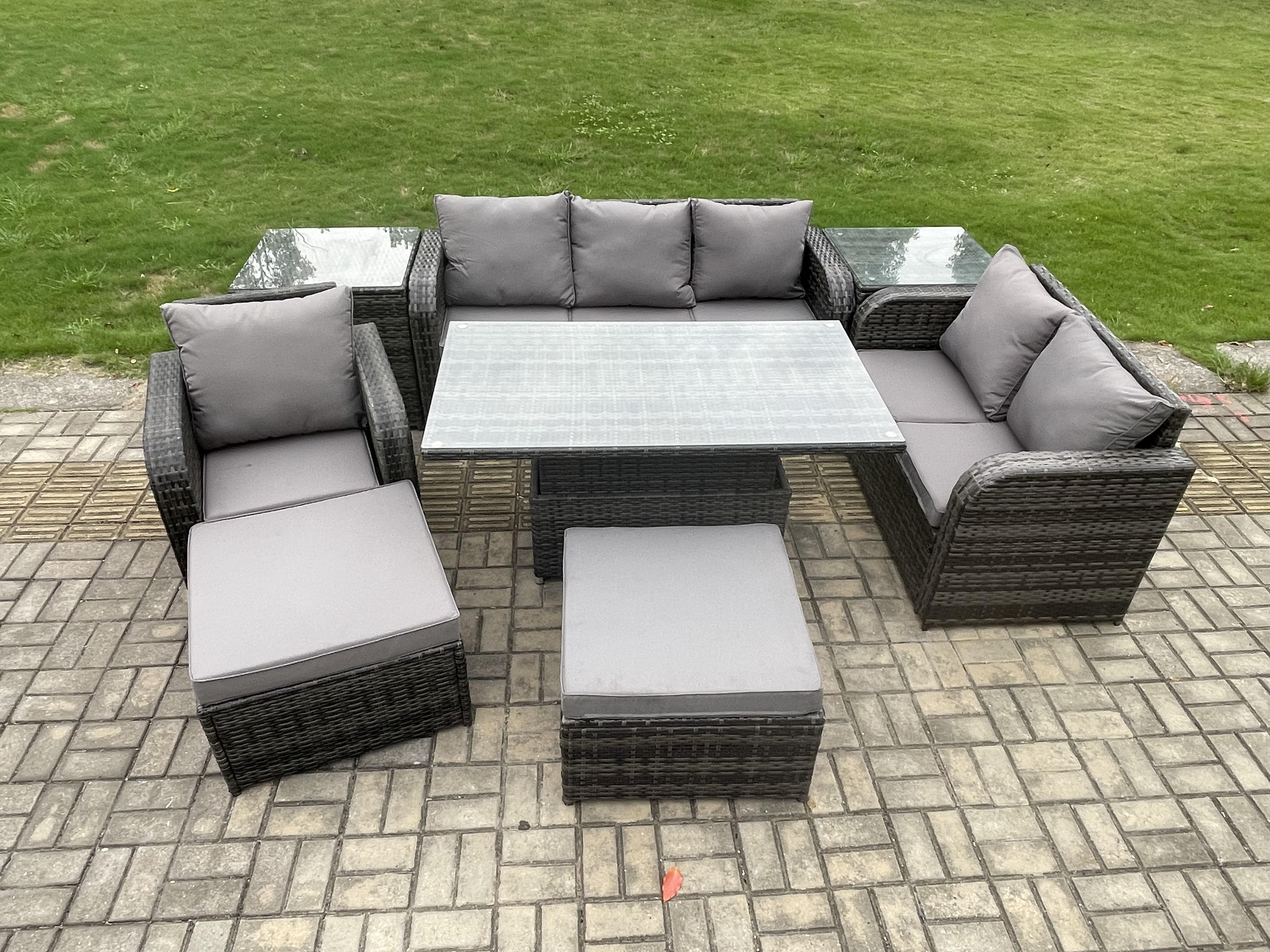8-Sitzer Polyrattan Gartenmöbelset höhenverstellbarer Tisch Love Sofa Sessel mit 2 Beistelltischen 2 hohen Hockern Dunkelgrau Gemischt