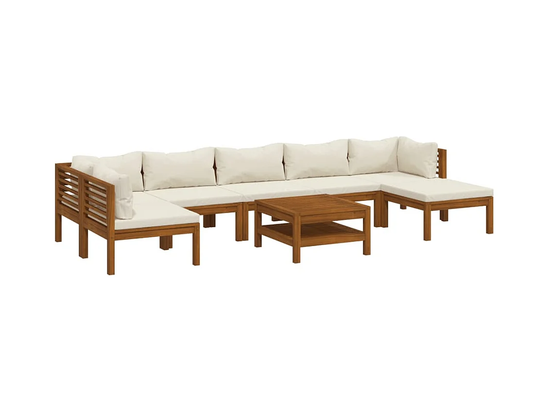 8-tlg. Garten-Lounge-Set mit Creme Kissen Massivholz Akazie
