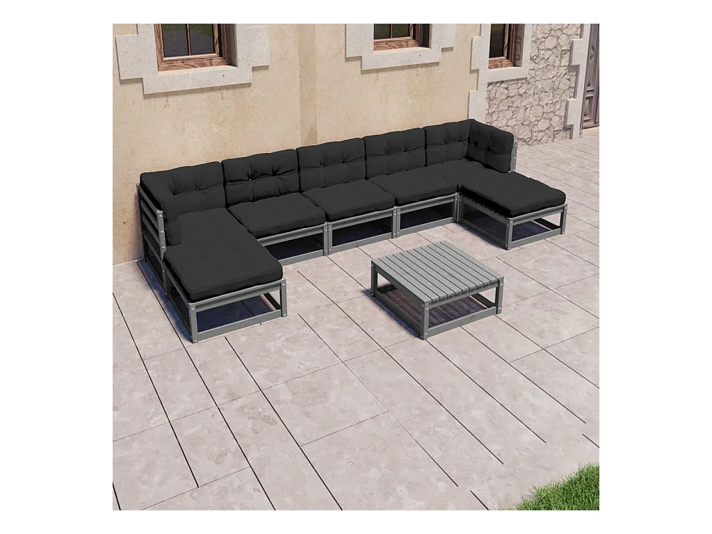 8-tlg. Garten-Lounge-Set mit Kissen Grau Massivholz Kiefer