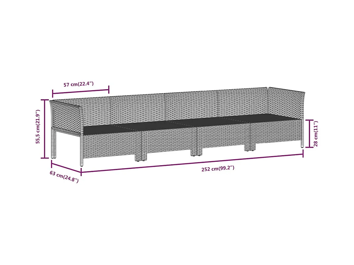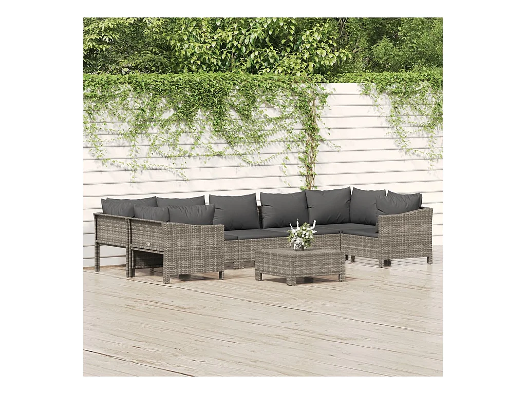 8-tlg. Garten-Lounge-Set mit Kissen Grau Poly Rattan
