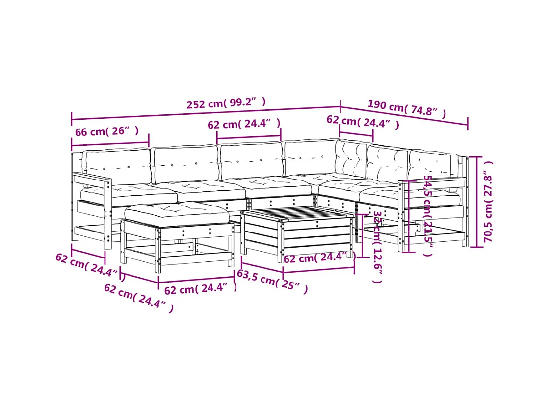 8-tlg. Garten-Lounge-Set mit Kissen Massivholz Douglasie