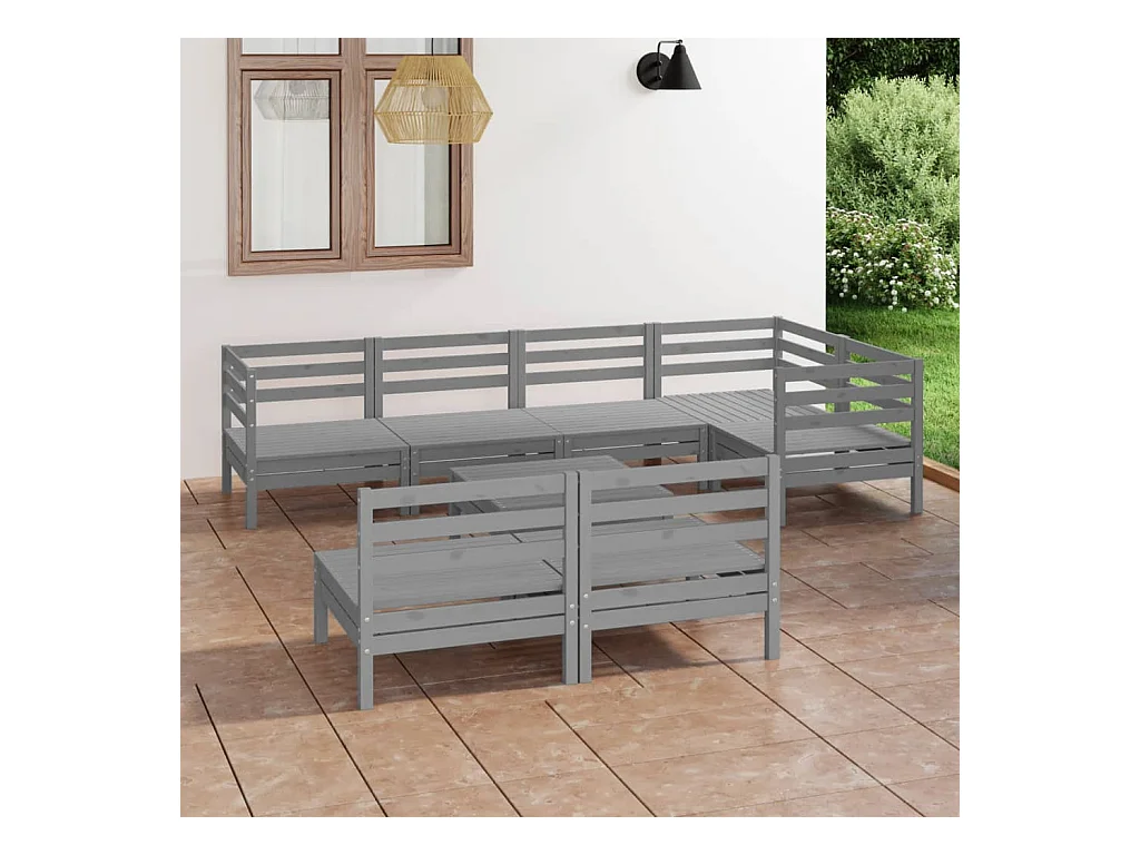 8-tlg. Garten-Sitzgruppe: Sofa + Tisch | Garten-Lounge-Set Massivholz Kiefer Grau -GKD161258