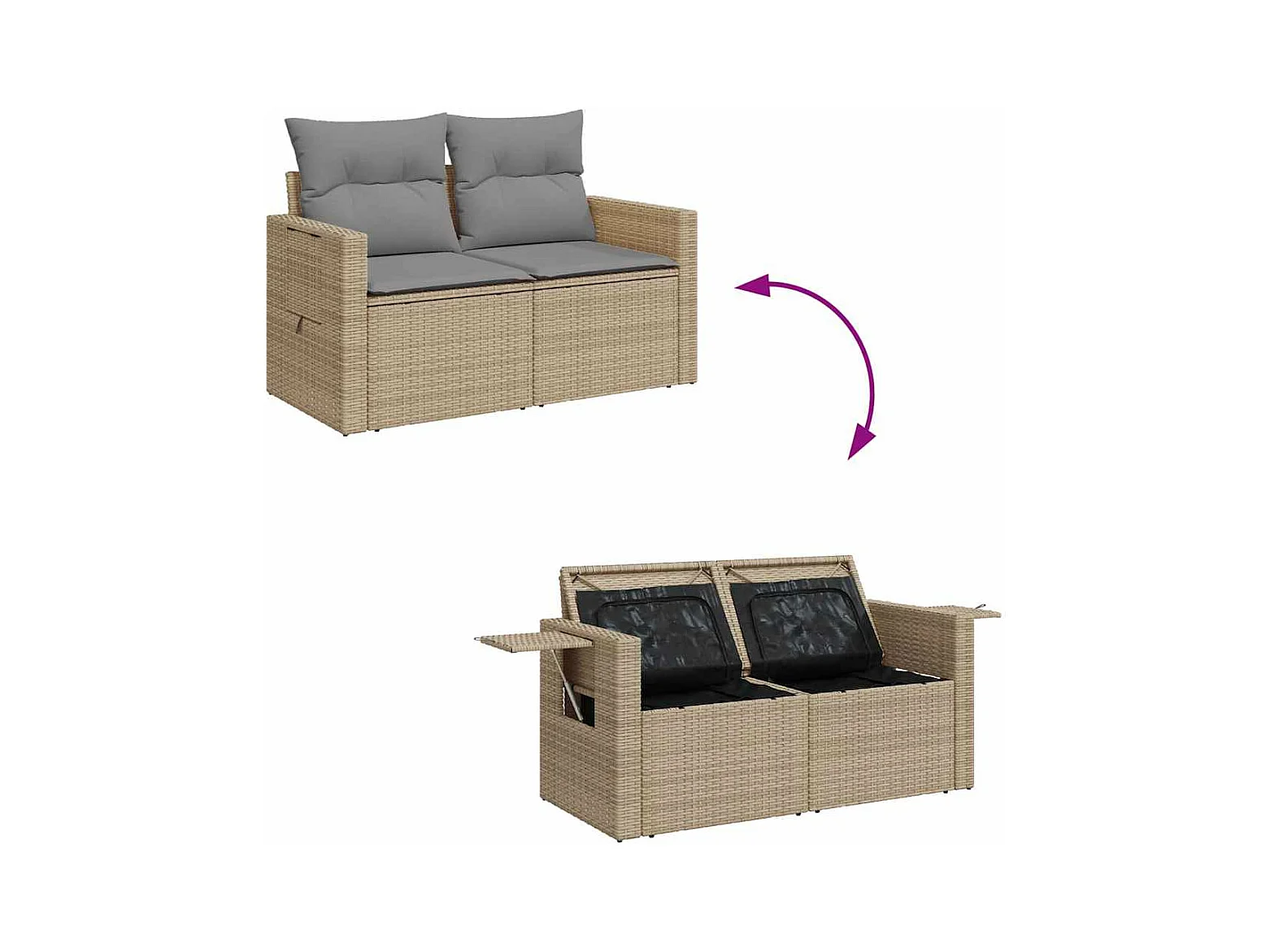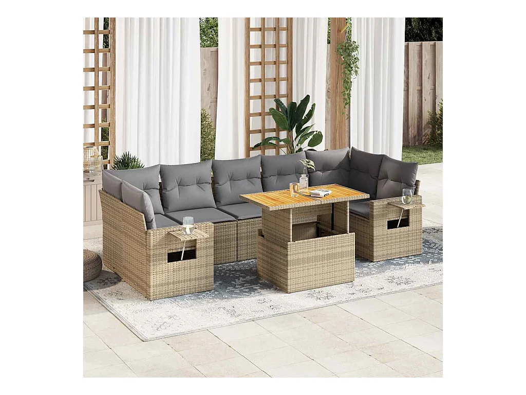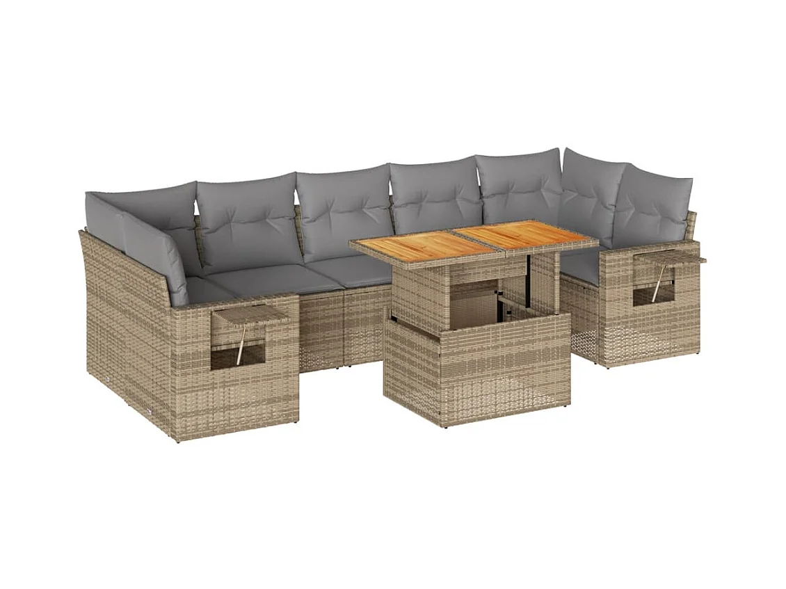 8-tlg. Garten-Sofagarnitur mit Kissen Beige Poly Rattan