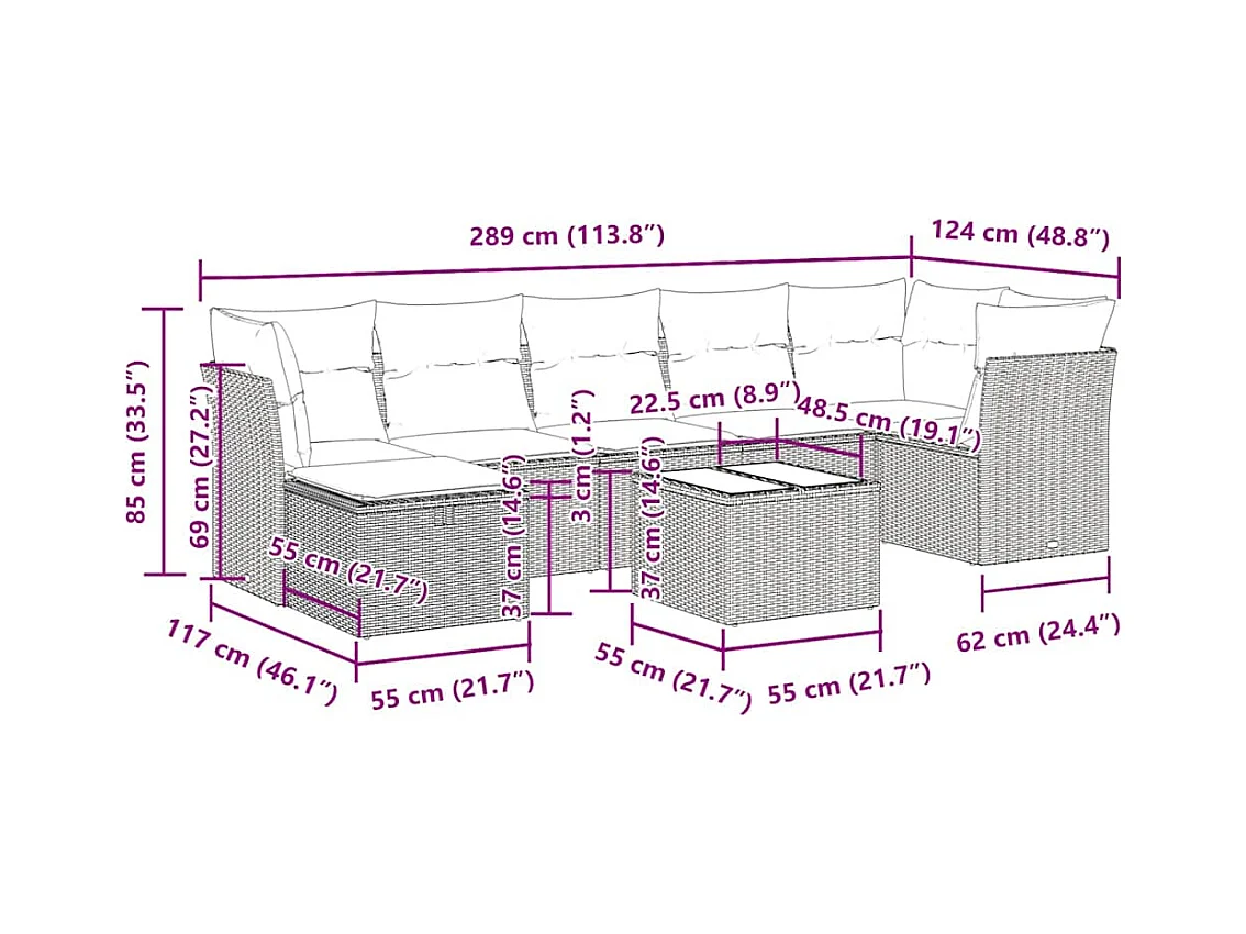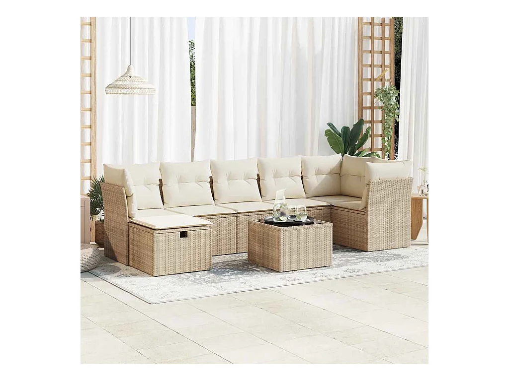8-tlg. Garten-Sofagarnitur mit Kissen Beige Poly Rattan