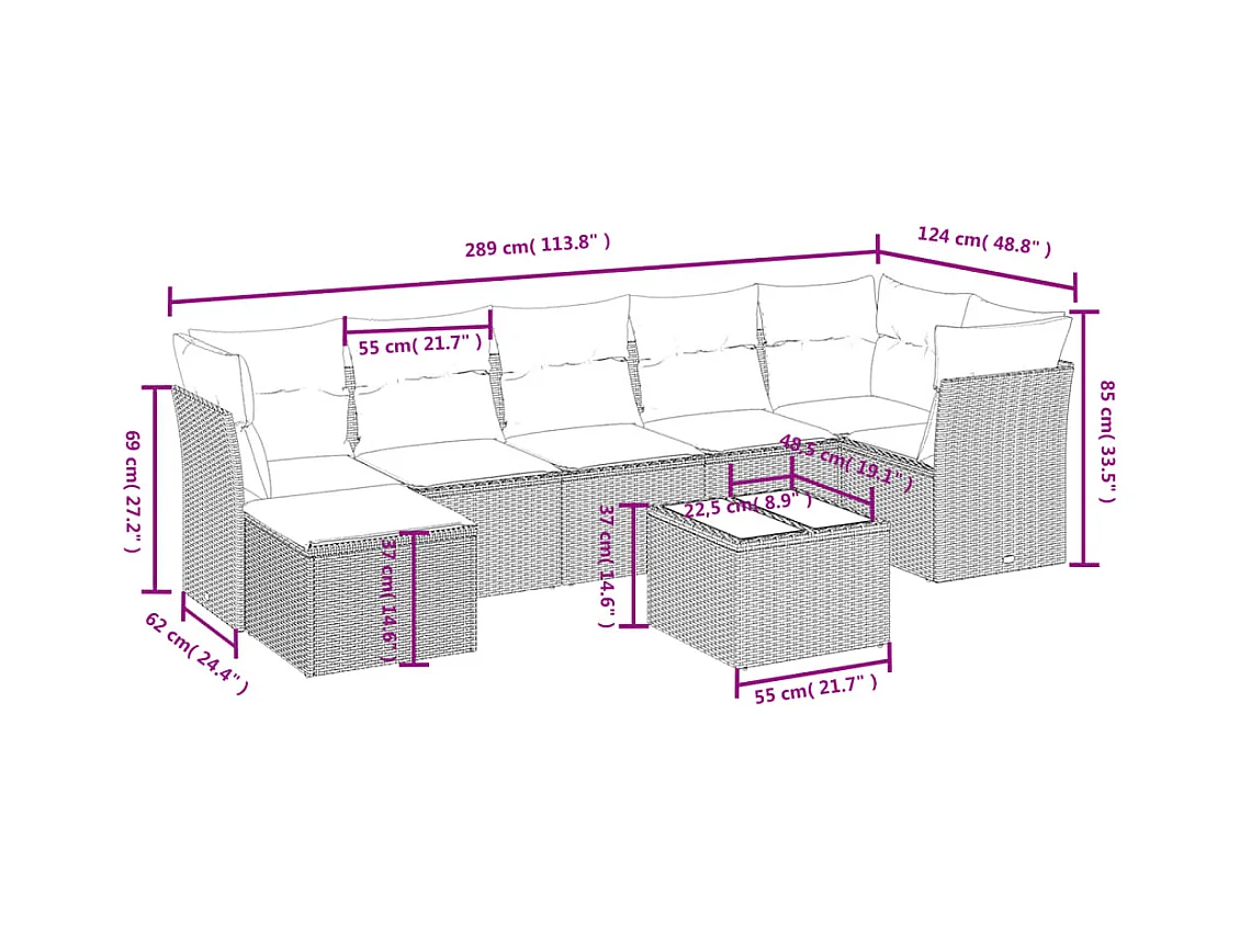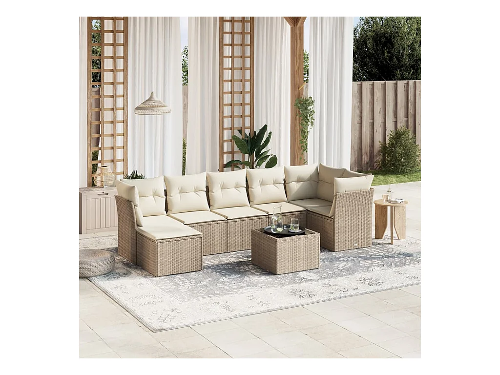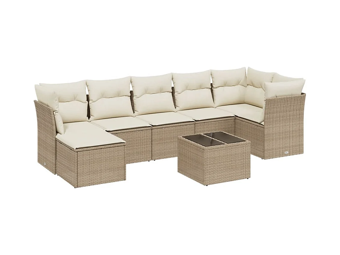 8-tlg. Garten-Sofagarnitur mit Kissen Beige Poly Rattan