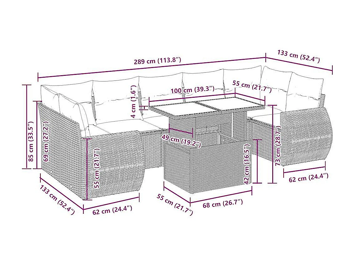 8-tlg. Garten-Sofagarnitur mit Kissen Schwarz Poly Rattan
