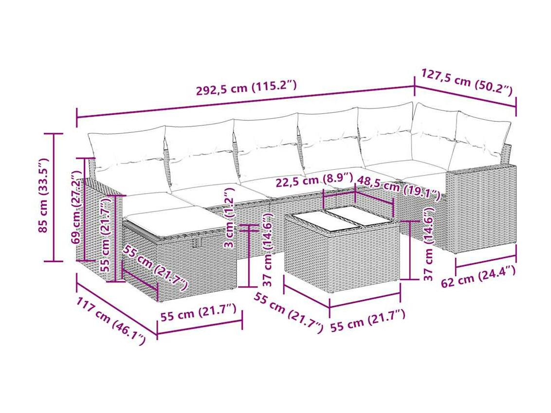 8-tlg. Garten-Sofagarnitur mit Kissen Schwarz Poly Rattan