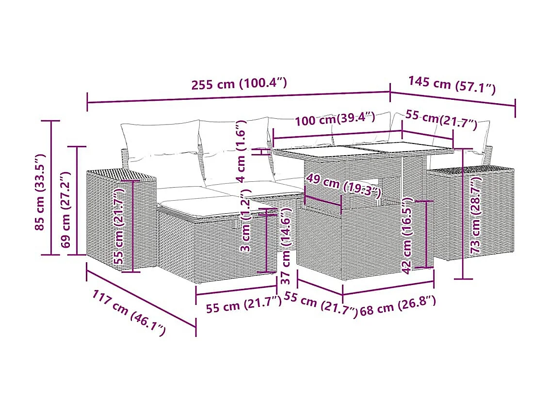 8-tlg. Garten-Sofagarnitur mit Kissen Schwarz Poly Rattan