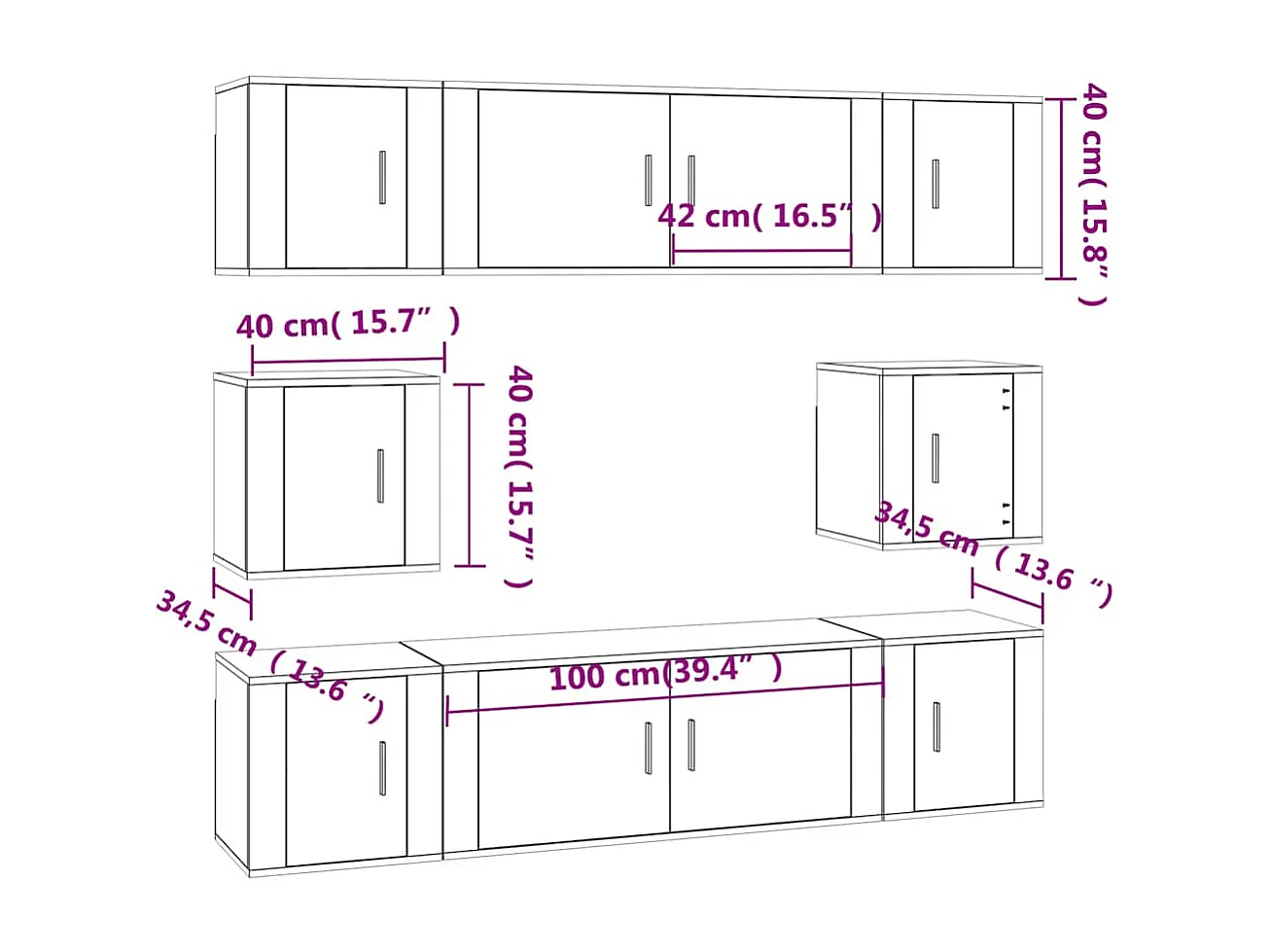 8-tlg. TV-Schrank-Set Betongrau Holzwerkstoff
