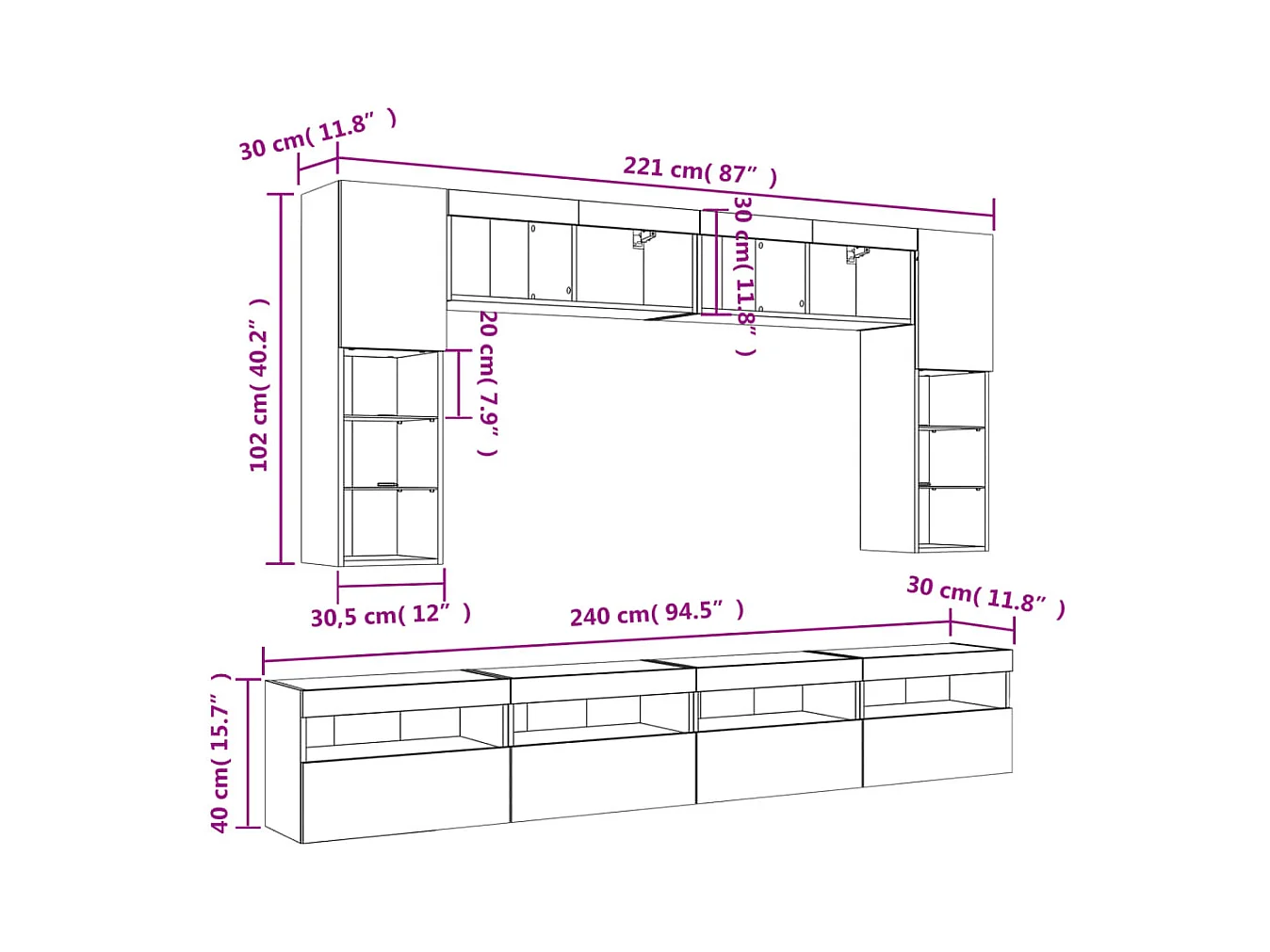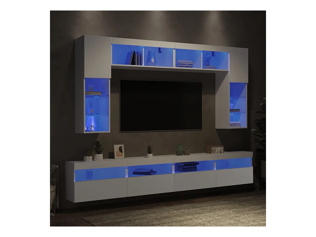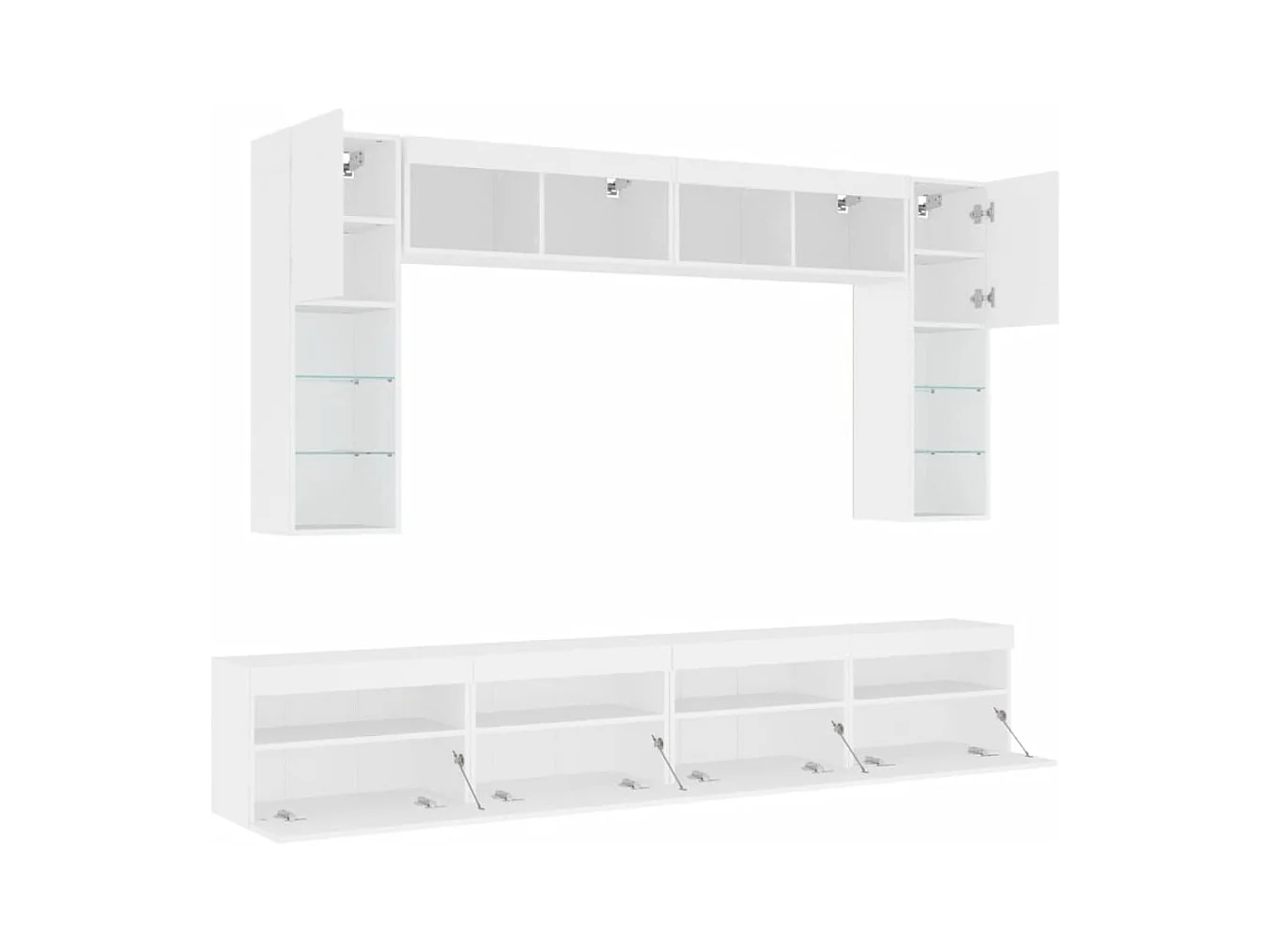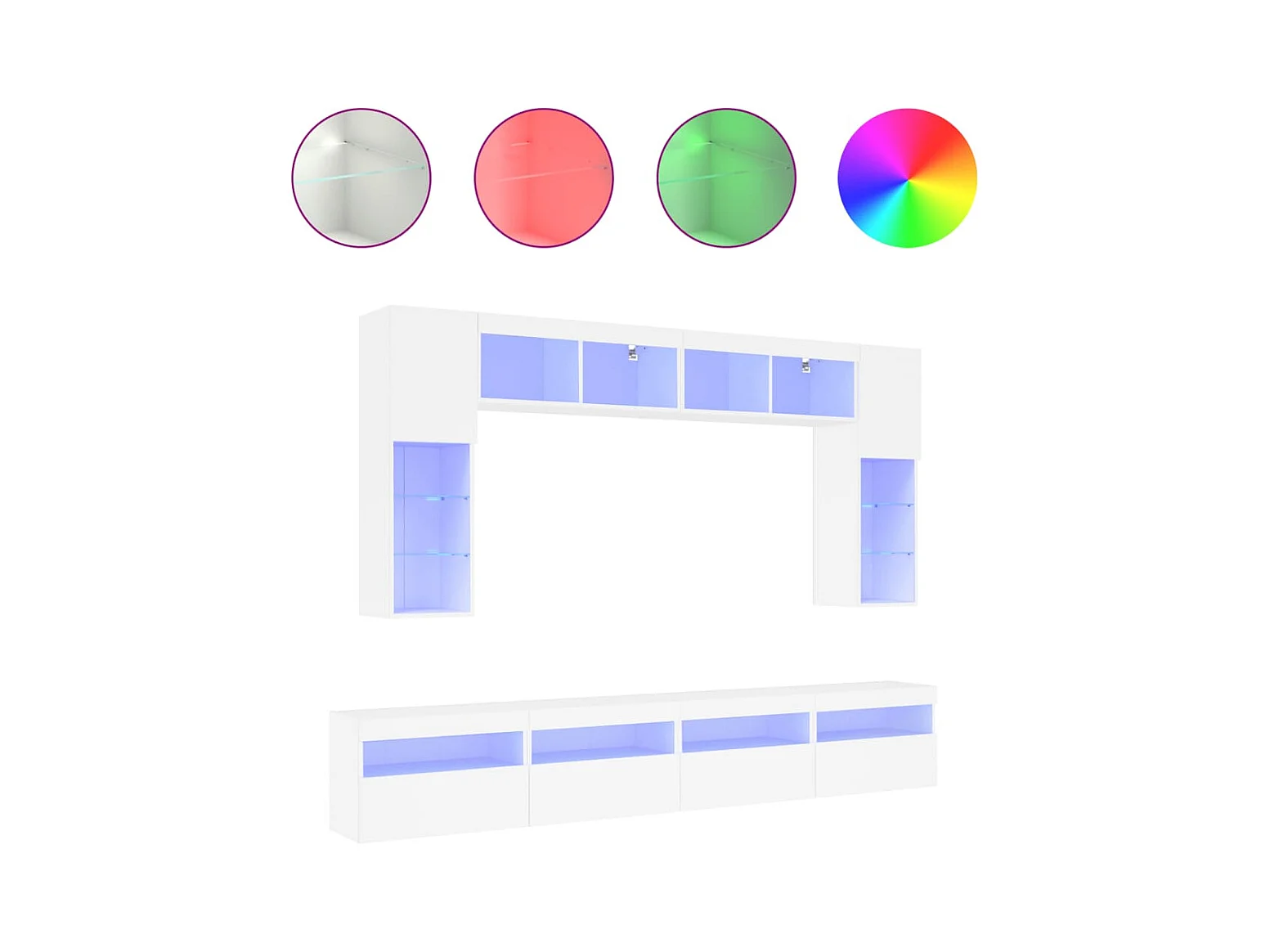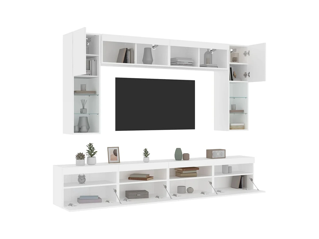 8-tlg. TV-Wohnwand mit LED-Leuchten Weiß