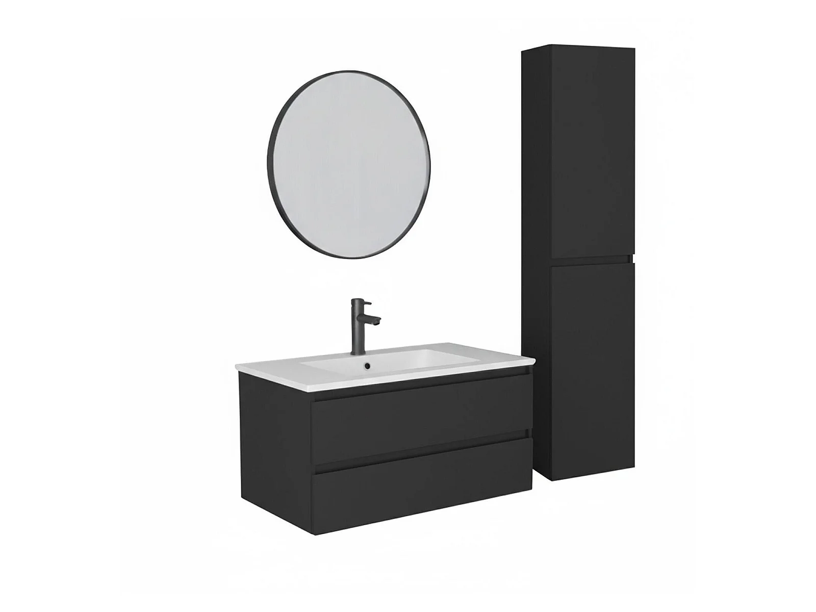 80 cm breiter Waschtisch mit Keramikplatte, Armatur, Spiegel SORRENTO