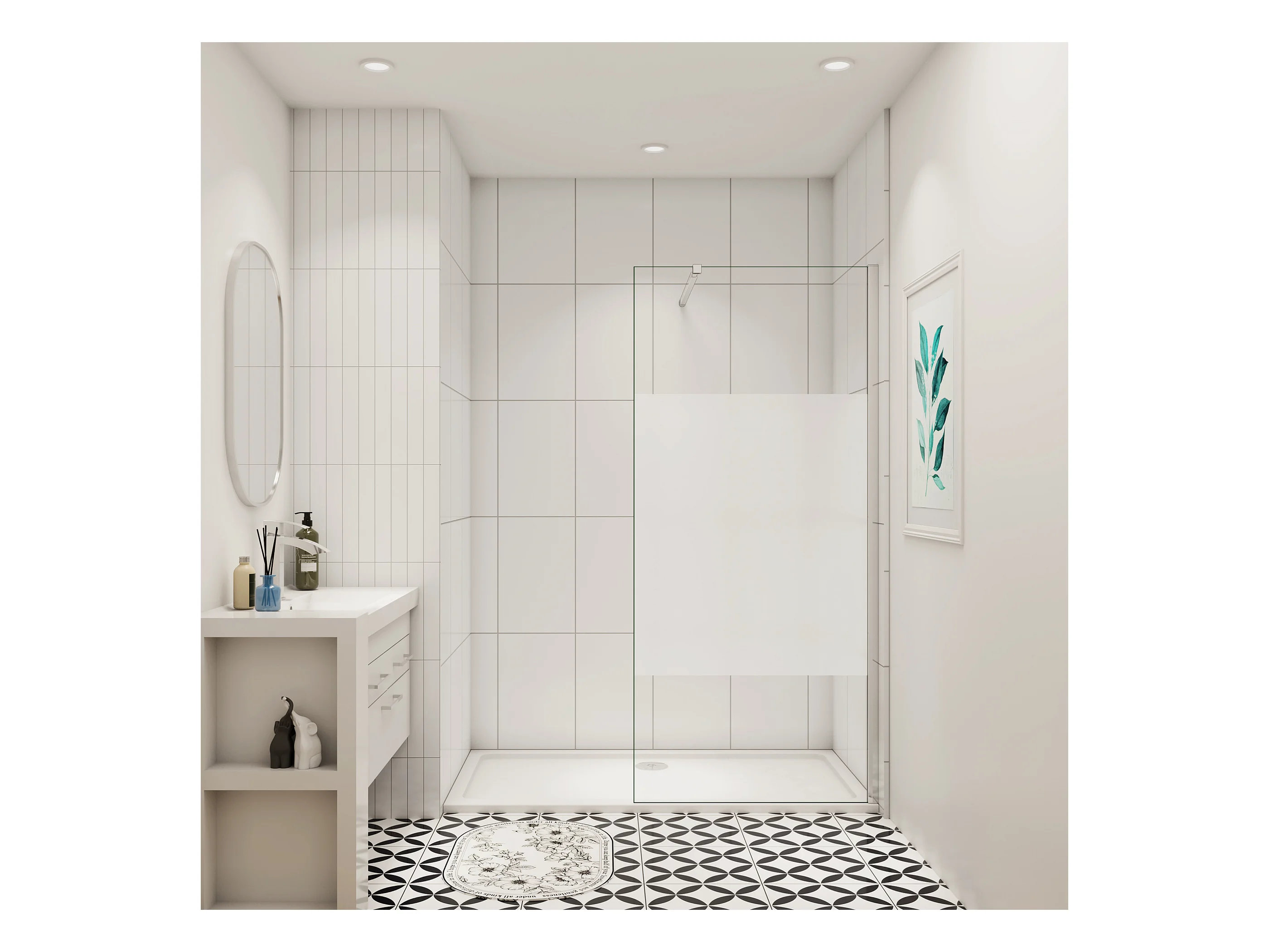 80x200cm Duschabtrennung Walk In 8mm Nano ESG Milchglasstreifen Duschabtrennung + 73-120cm Stabilisator Höhe 200cm