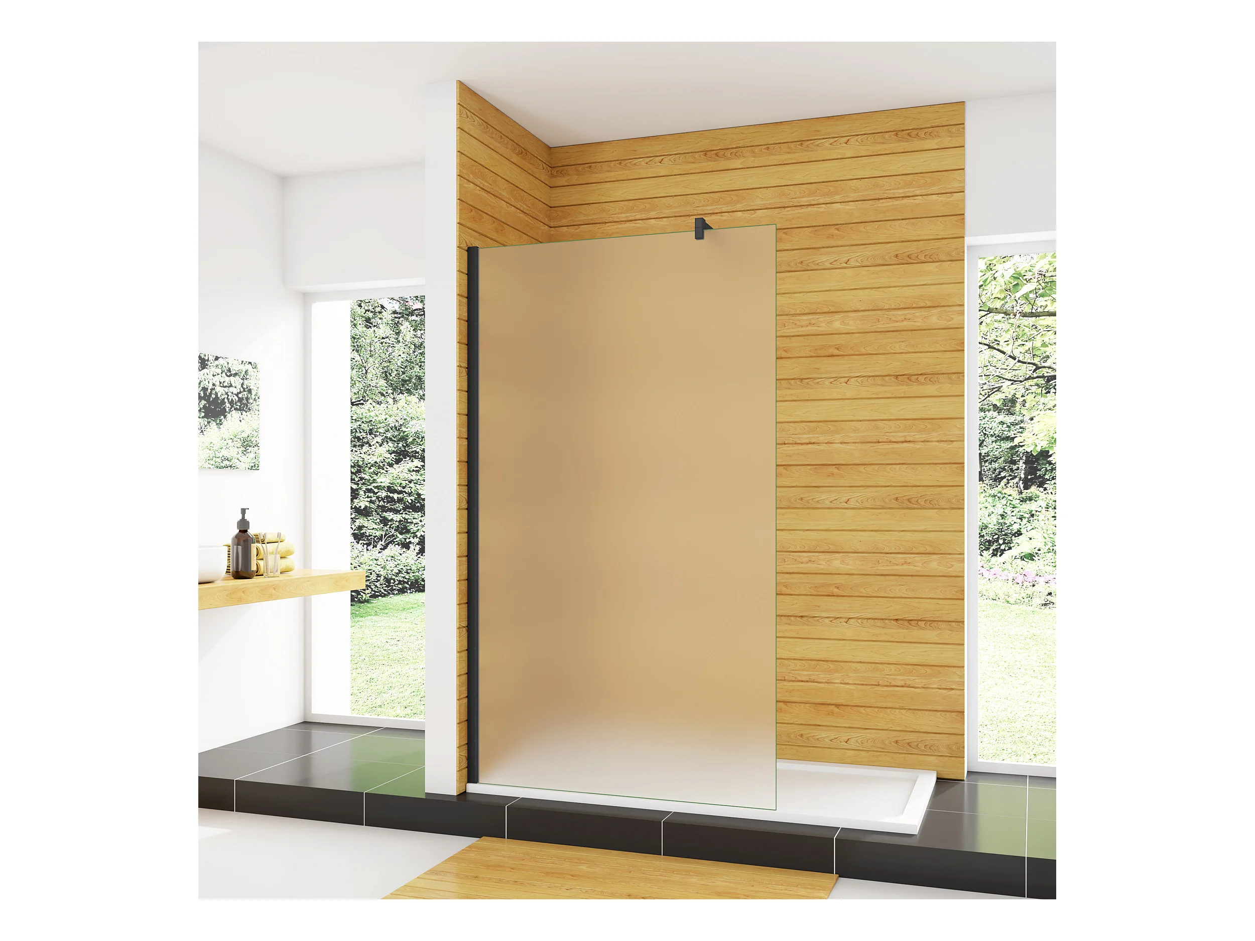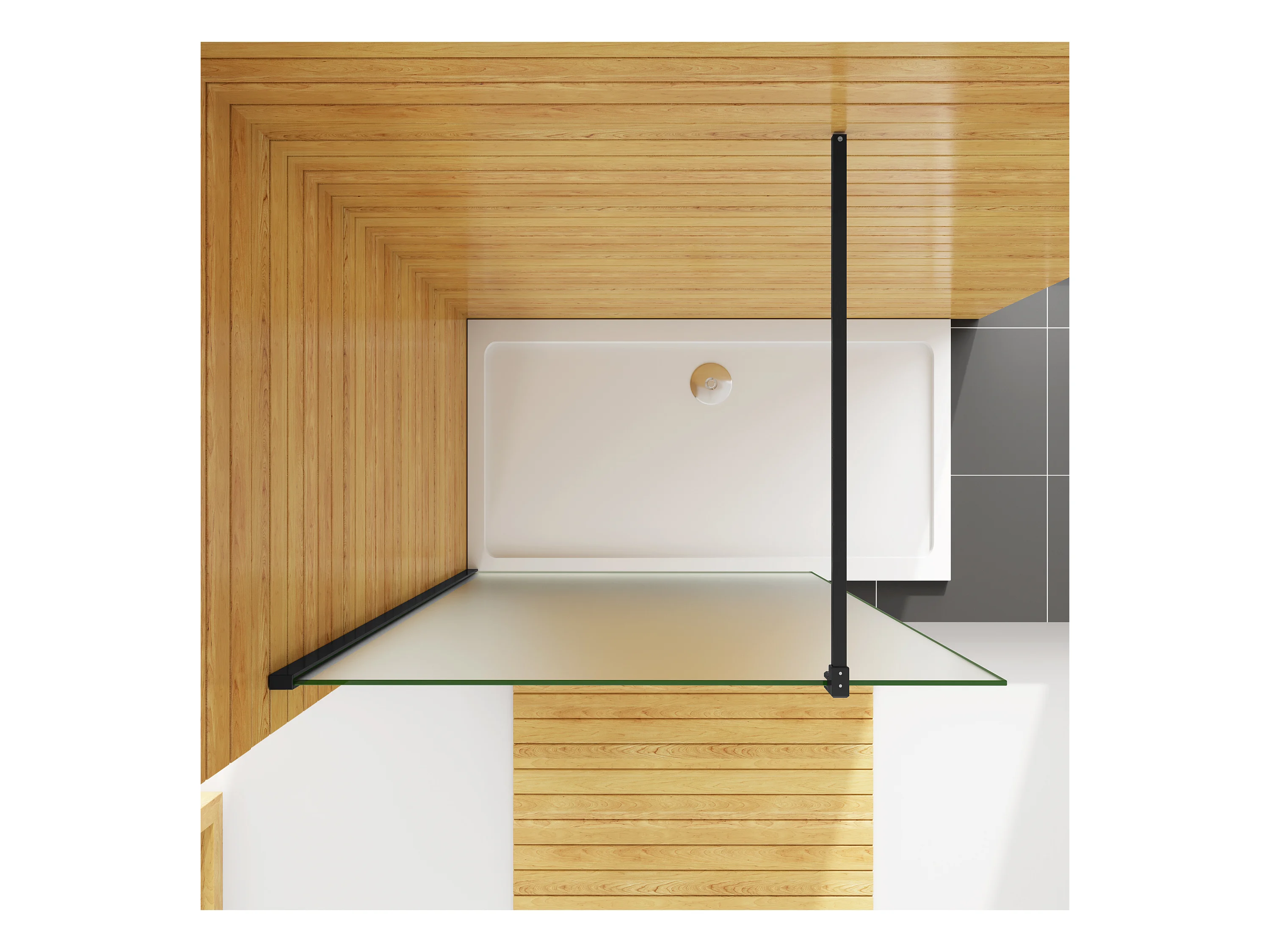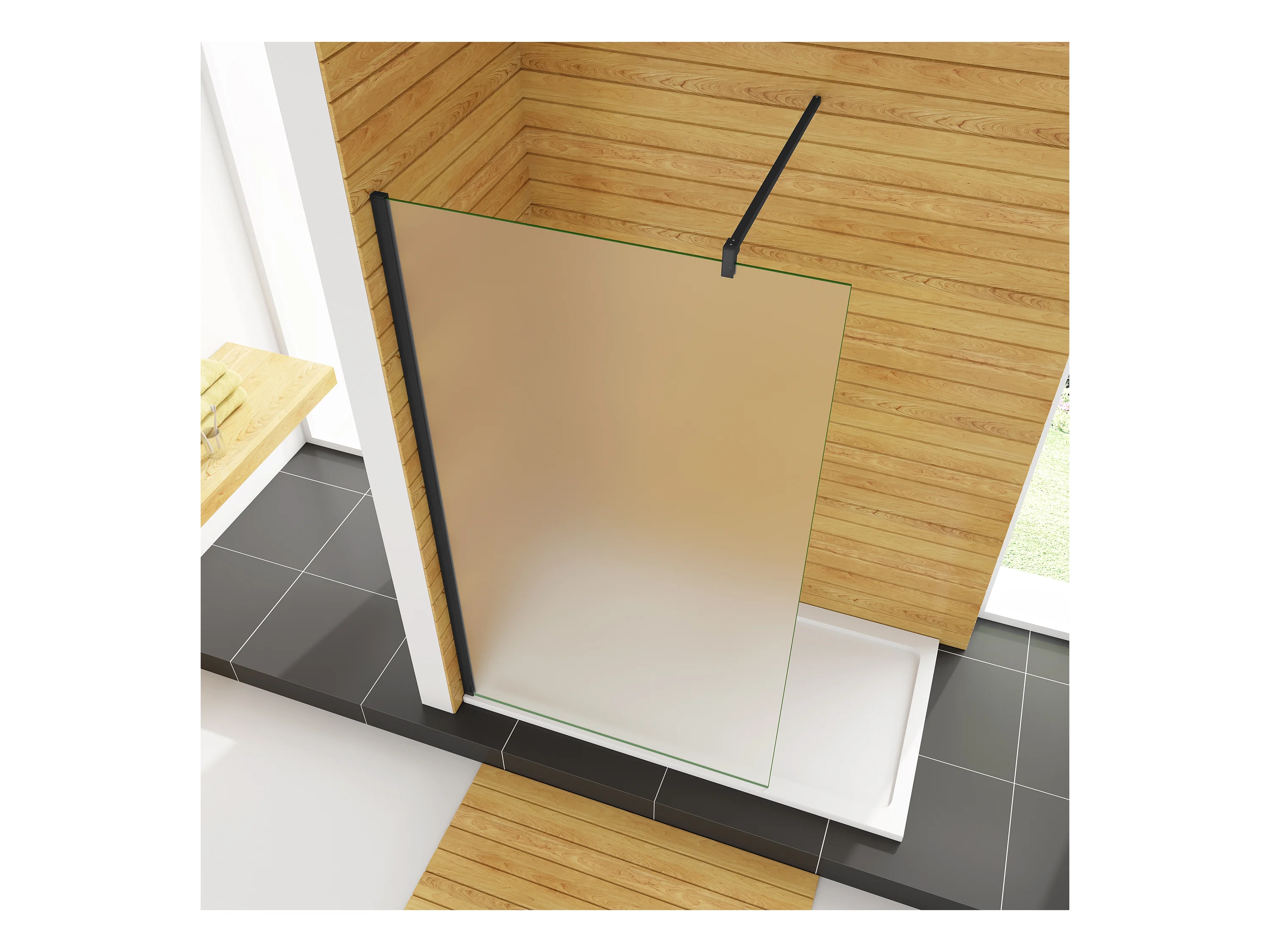 80x200cm Schwarzrahmen Duschabtrennung Walk In 10mm Nano ESG Milchglas Duschabtrennung + F Form 140cm Stabilisator