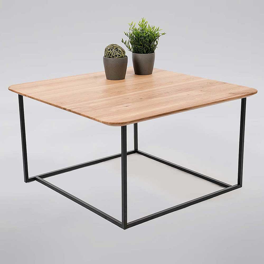80x80 Wohnzimmertisch aus Wildeiche Massivholz Bügelgestell