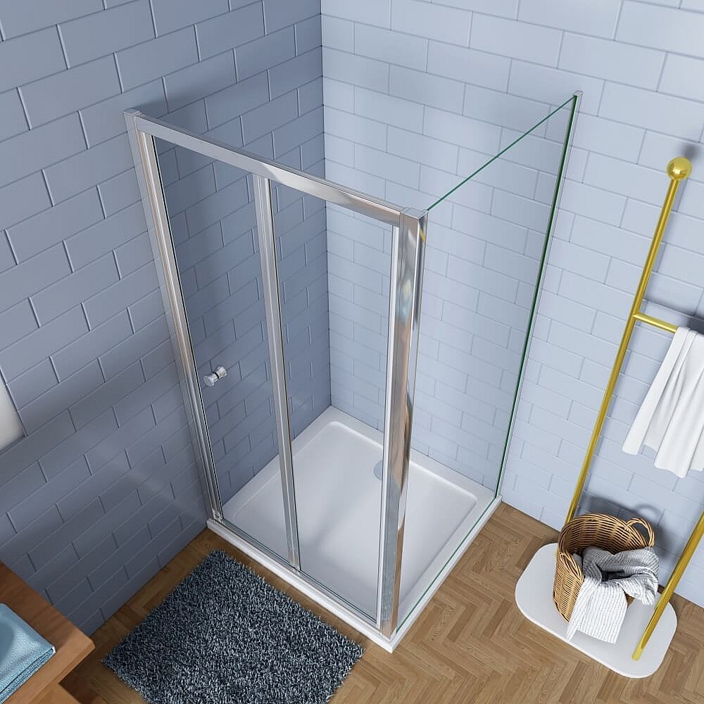 80x80x185cm 5mm ESG mit Seitenwand Pendeltür Falttür Duschkabine