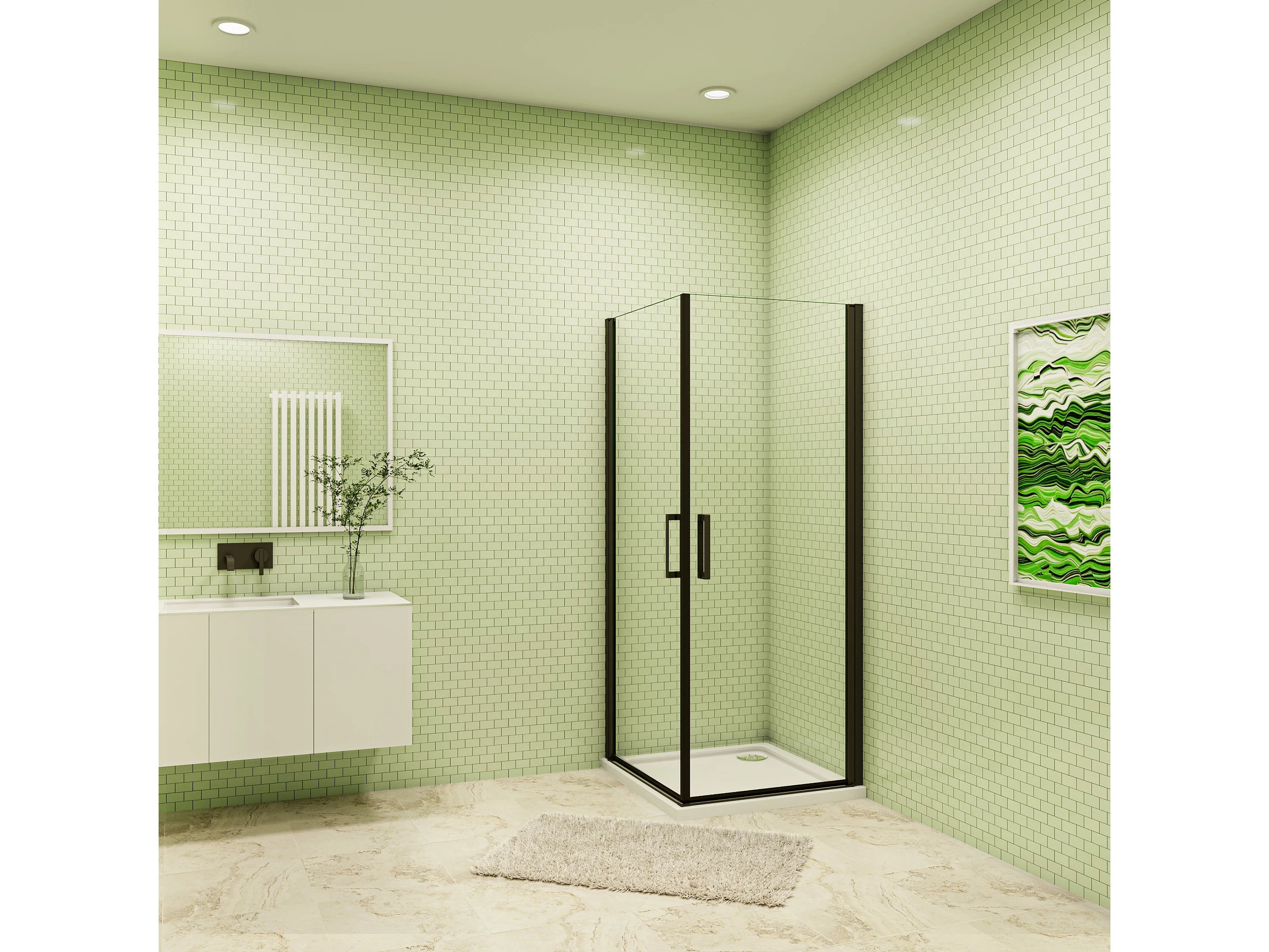 80x80x200cm 8mm Duschtrennwand Drehtür Glastür Duschtür Duschkabine schwarz mit Duschwand