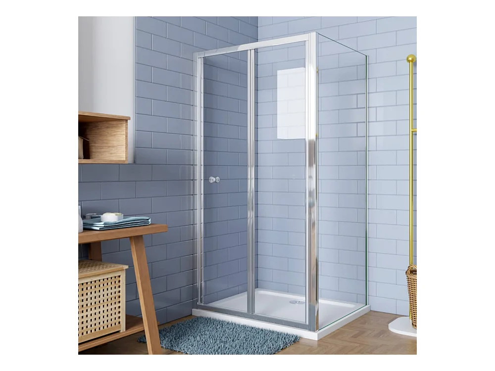 80x90x185cm 5mm ESG mit Seitenwand Pendeltür Falttür Duschkabine