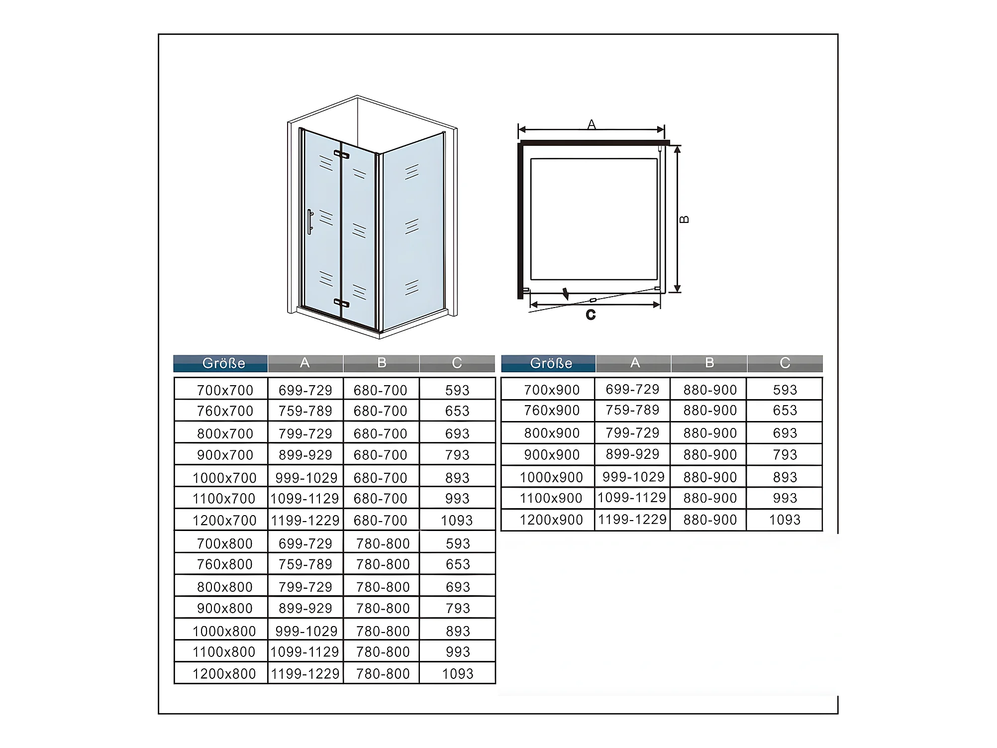 80x90x195cm Drehtür & Falttür(L-Form) Schwingtür Eckeinstieg Seitenwand Dusche Duschabtrennung