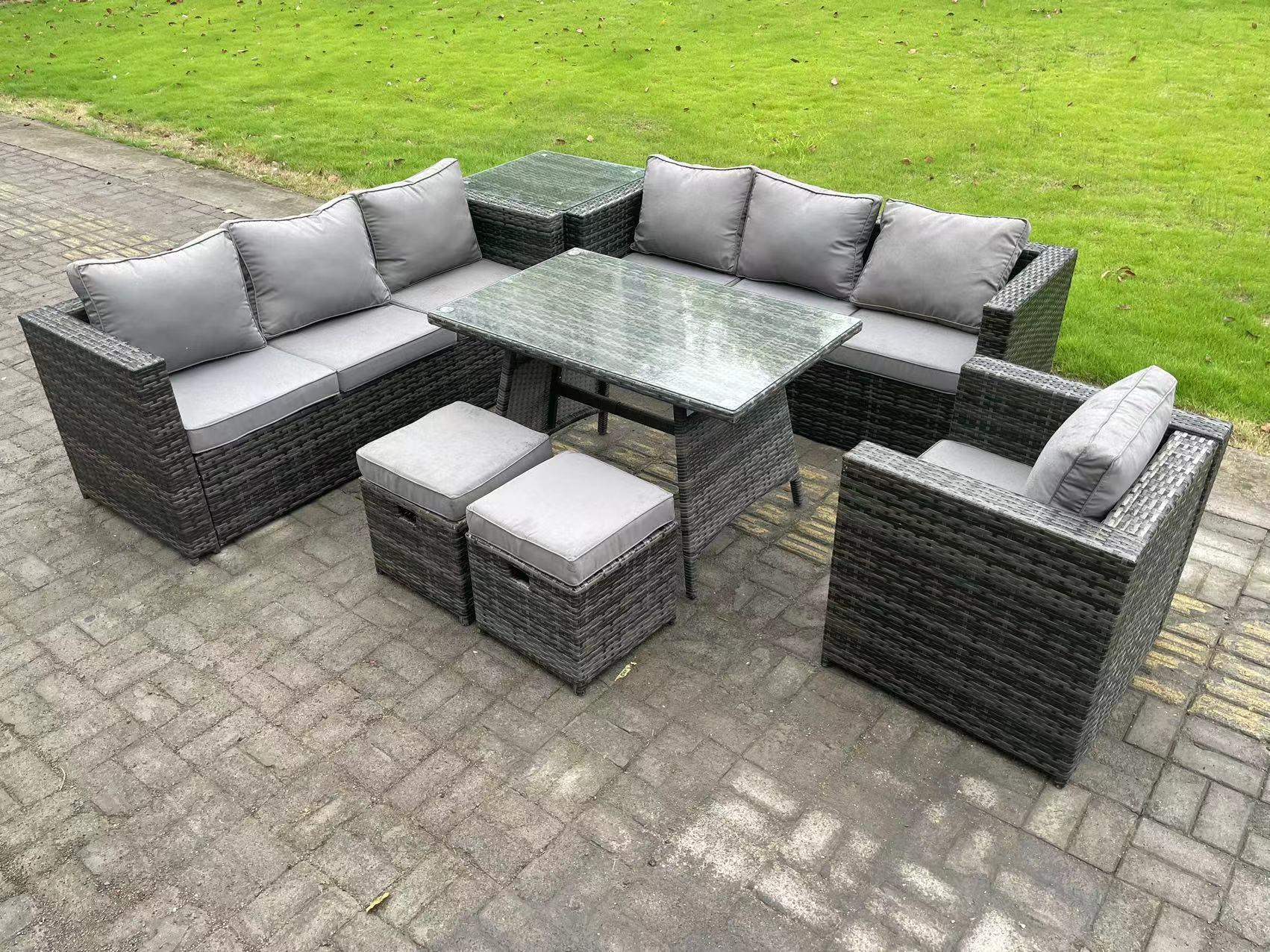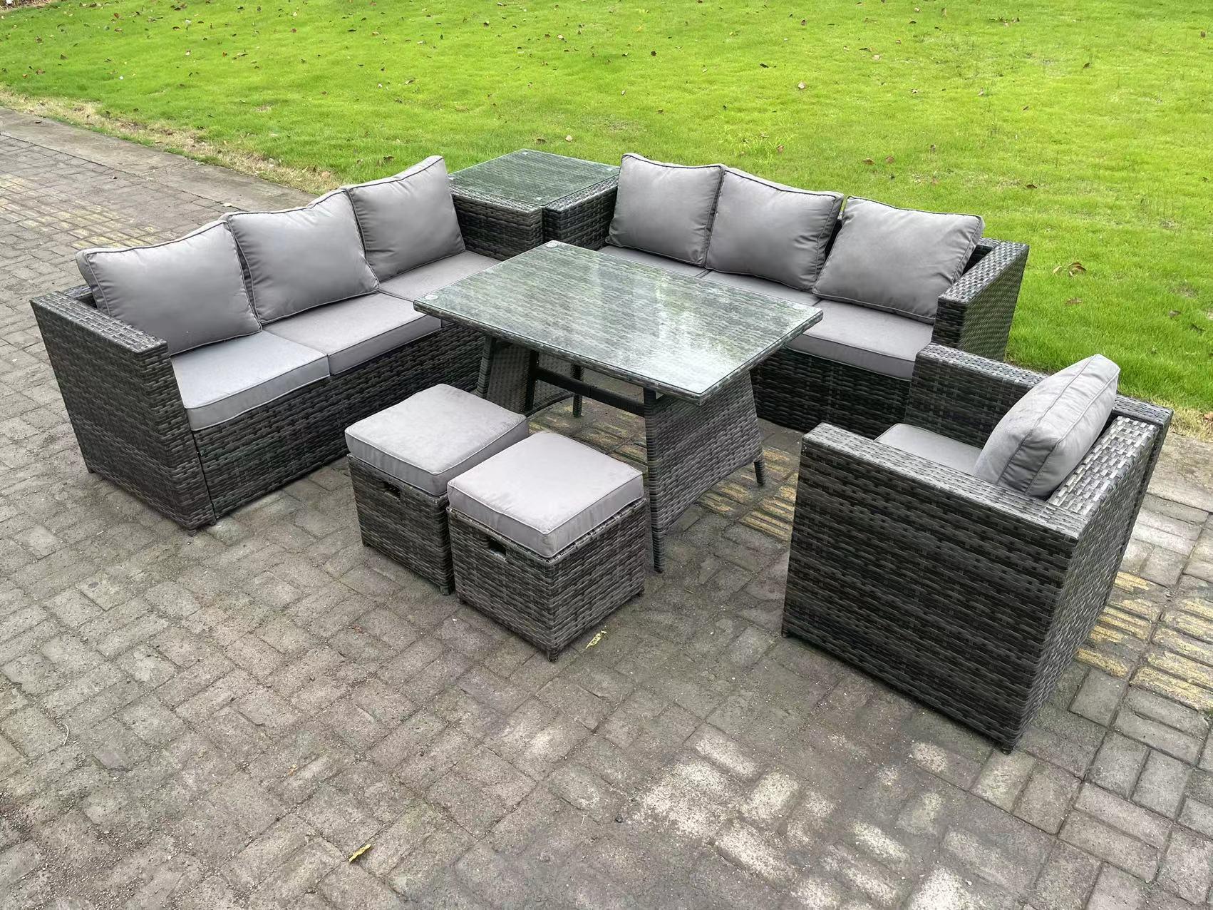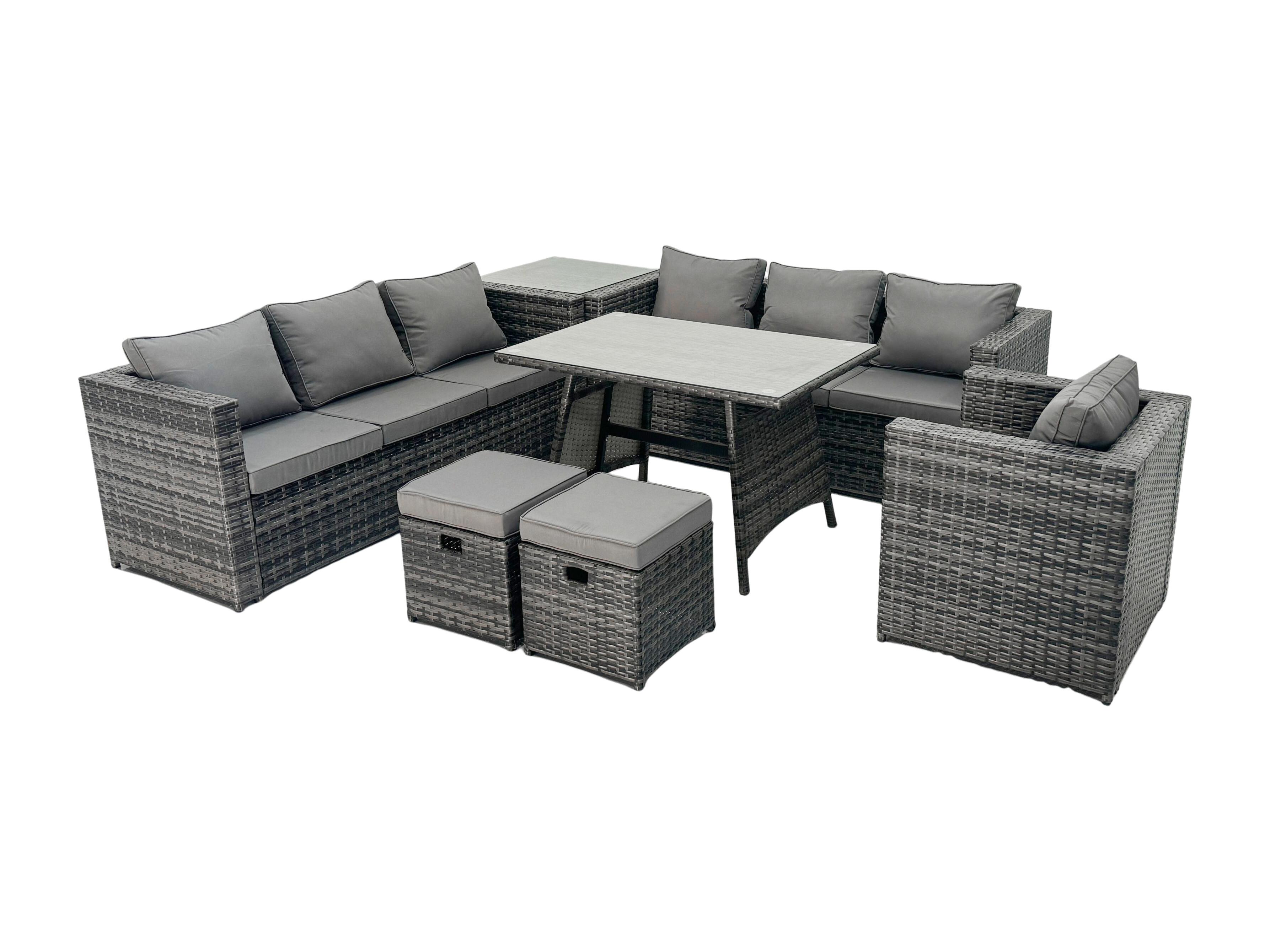 9-Sitzer Gartenmöbel Lounge Sofa Set mit Esstisch Sessel Beistelltisch 2 kleine Fußhockern Dunkelgrau Gemischt