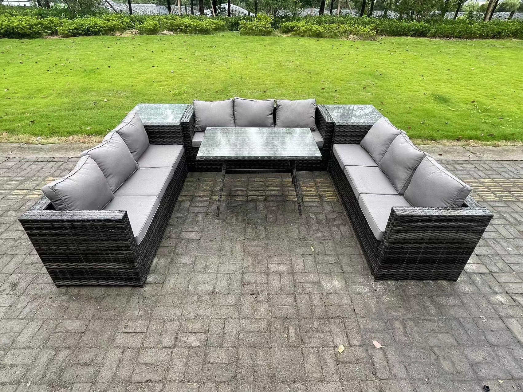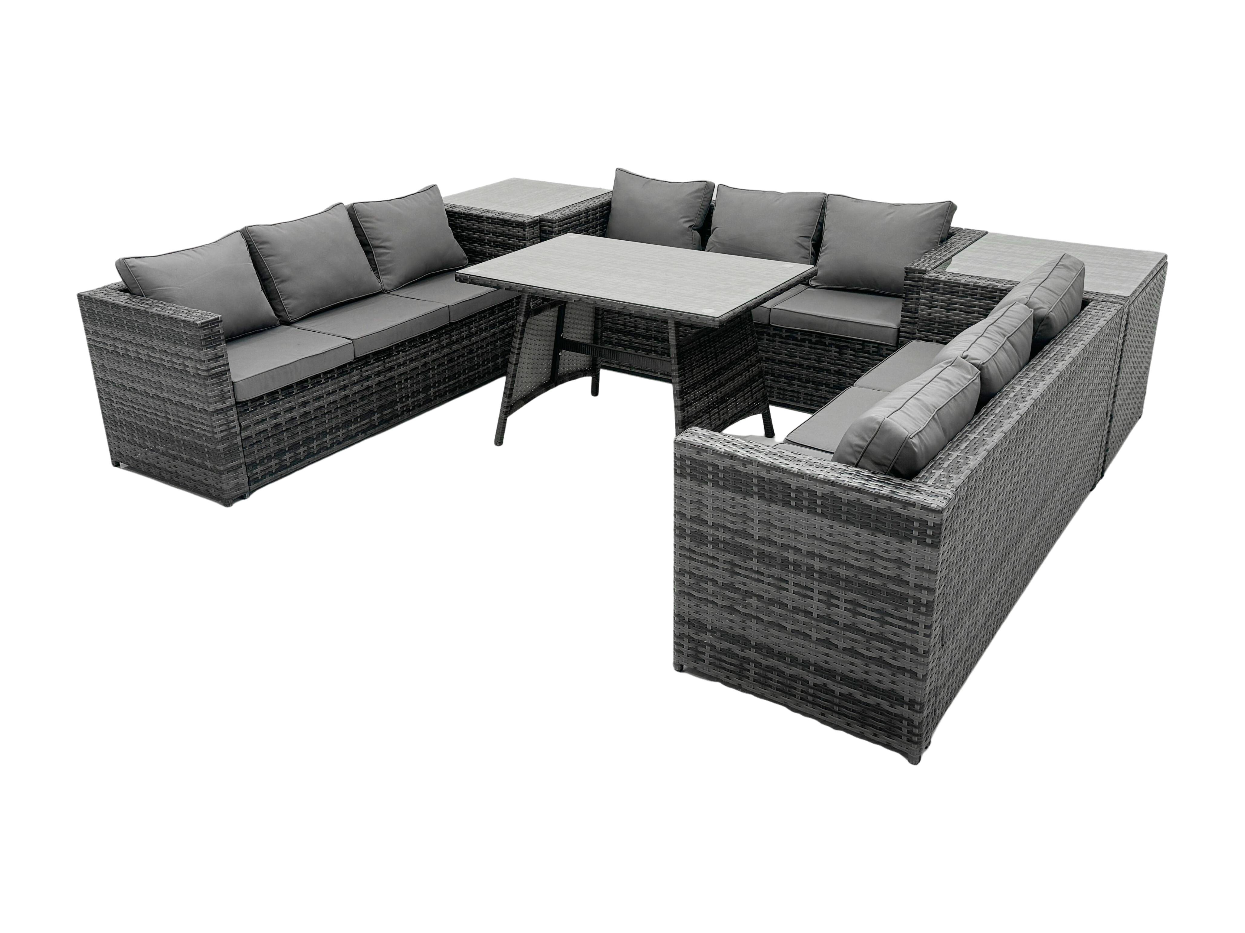 9-Sitzer Gartenmöbel Lounge Sofa Set mit Patio Esstisch 2 Beistelltischen Dunkelgrau Gemischt