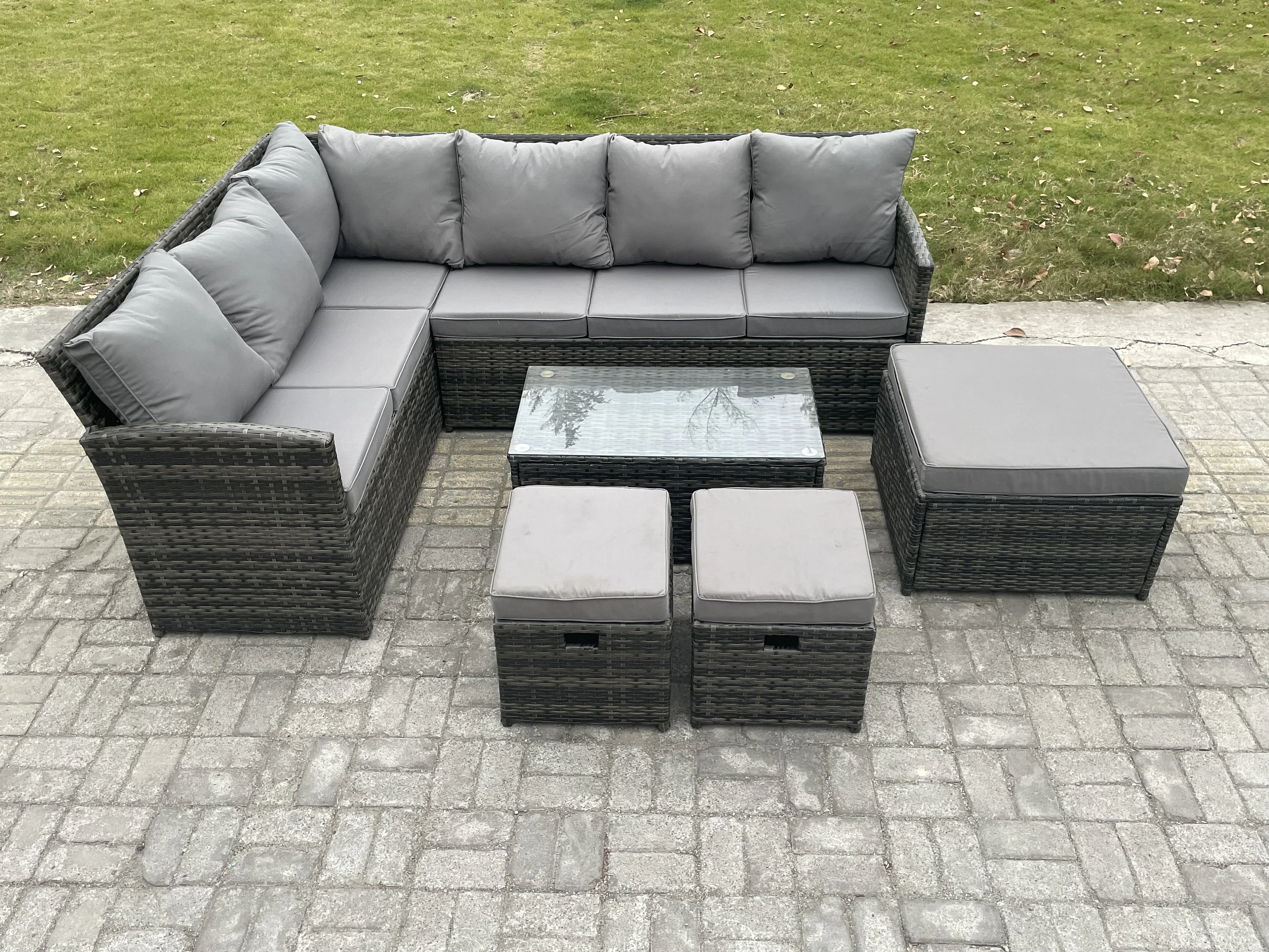 9 Sitzer Gartenmöbel-Set aus Rattan mit Couchtisch 3 Fußhockern Dunkelgrau gemischt