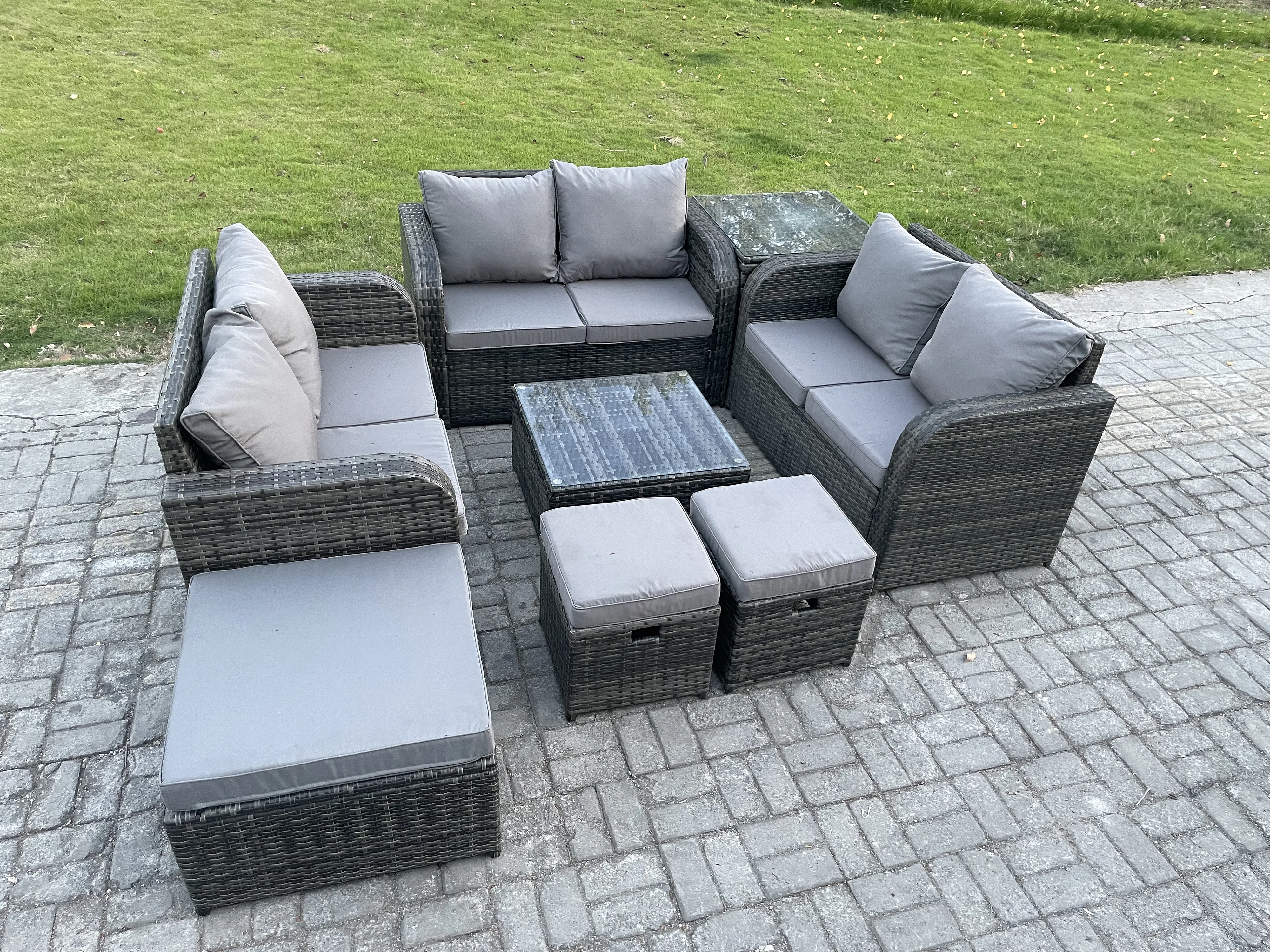 9-Sitzer Möbe Gartenmöbel set für den Terrasse Balkon Dunkelgrau