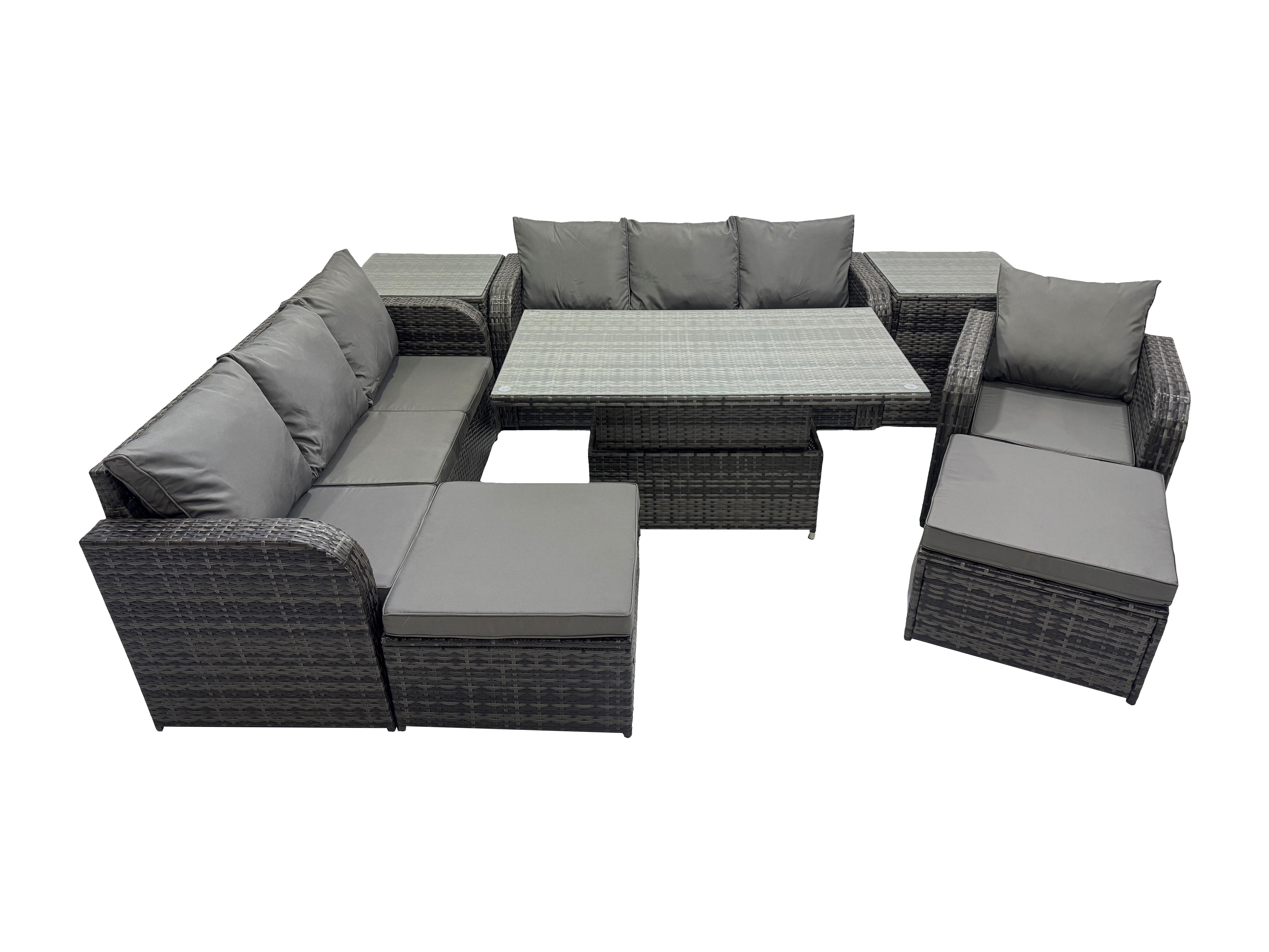 9-Sitzer Polyrattan Gartenmöbel-Sets höhenverstellbarer Tisch Sofa Set mit 2 Beistelltischen Liegestühle 2 hohen Hockern