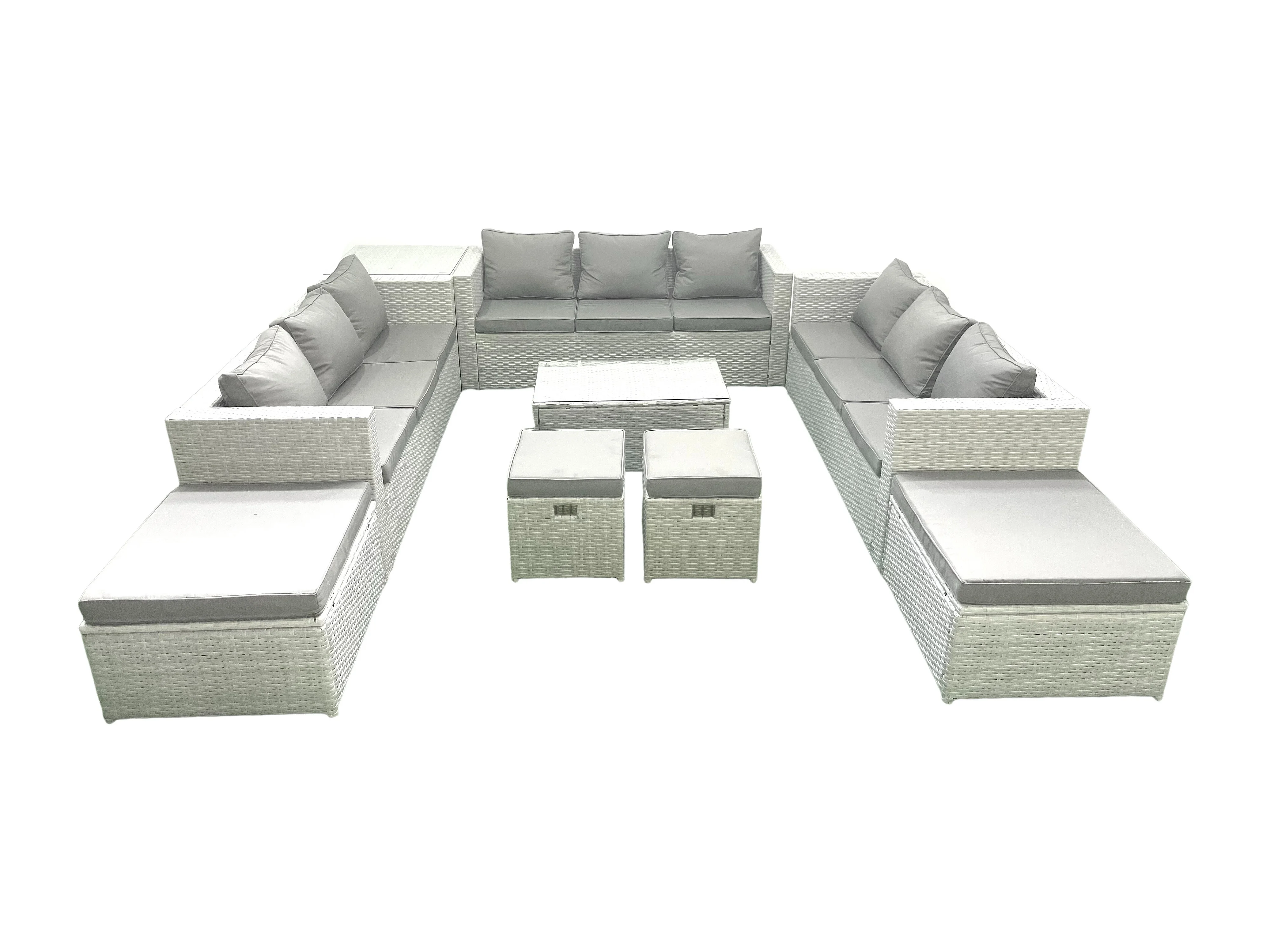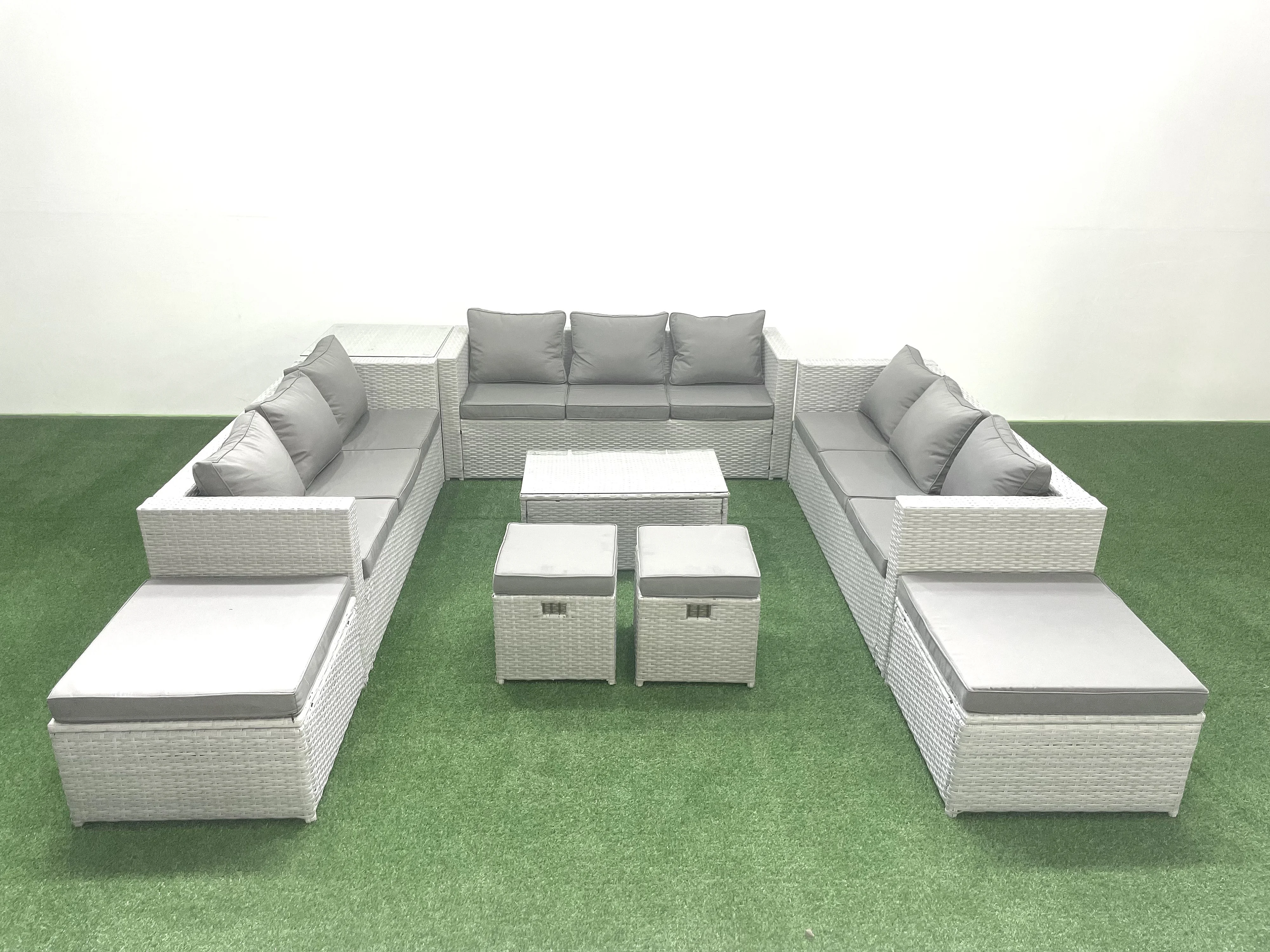 9 Stücke Rattan Gartenmöbel Set Garten Sofa Couchtisch Set mit Beistelltisch 4 Hockern Hellgrau gemischt