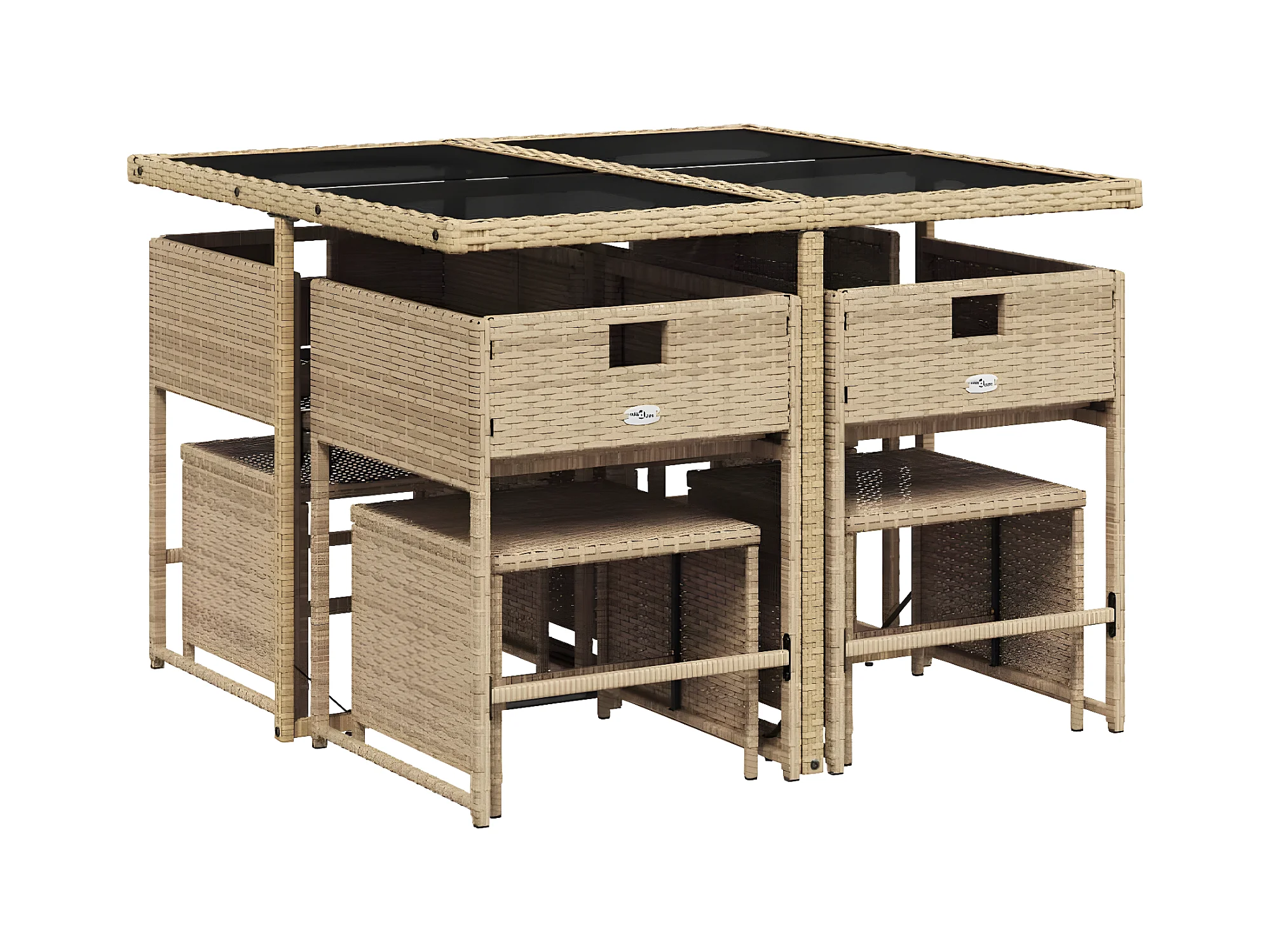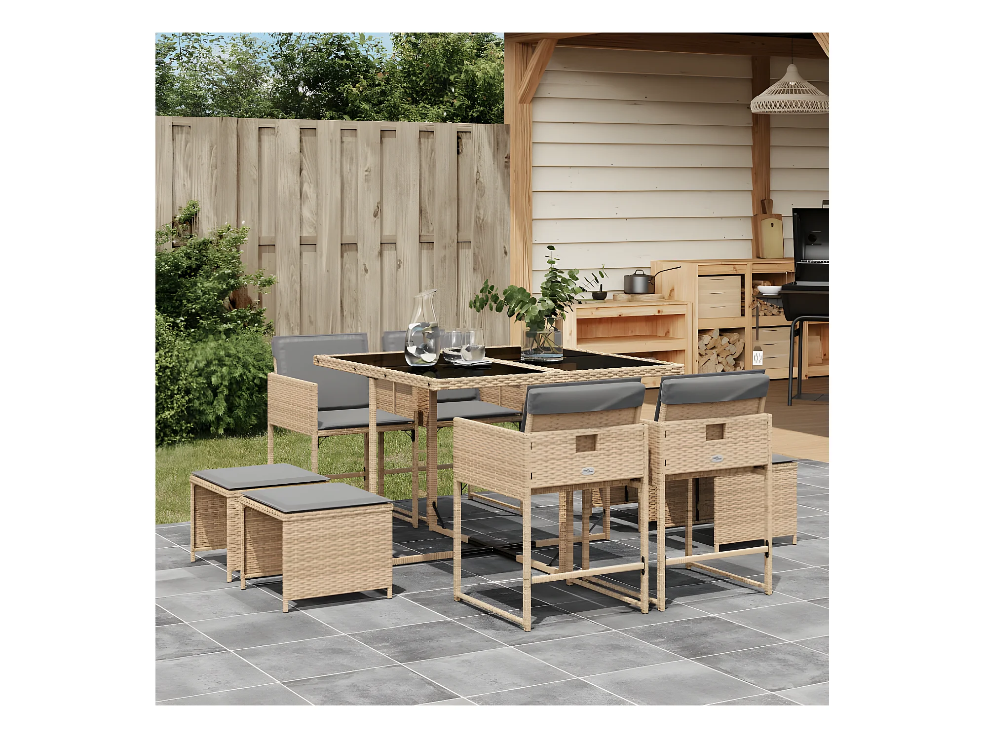 9-tlg. Garten-Essgruppe,Gartensitzgruppe mit Kissen Beigemischung Poly Rattan -gkd29021