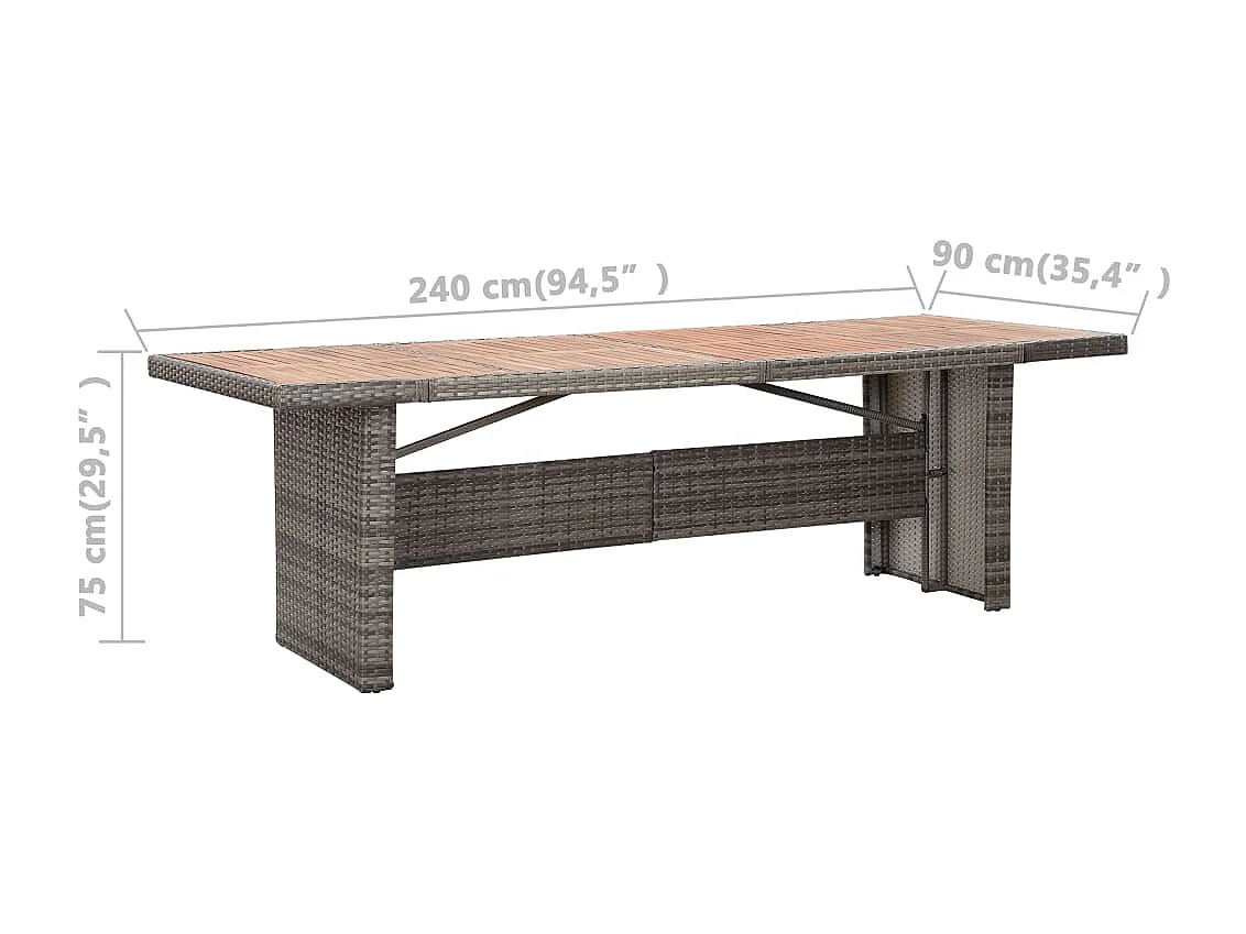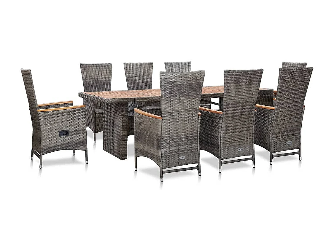 9-tlg. Garten-Essgruppe mit Auflagen Poly Rattan Grau