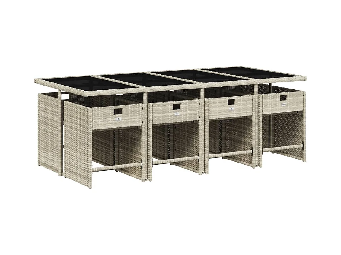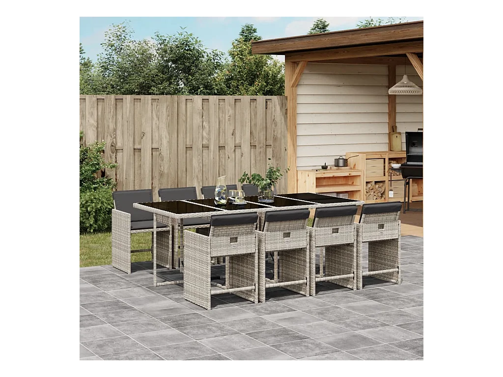 9-tlg. Garten-Essgruppe mit Kissen Hellgrau Poly Rattan