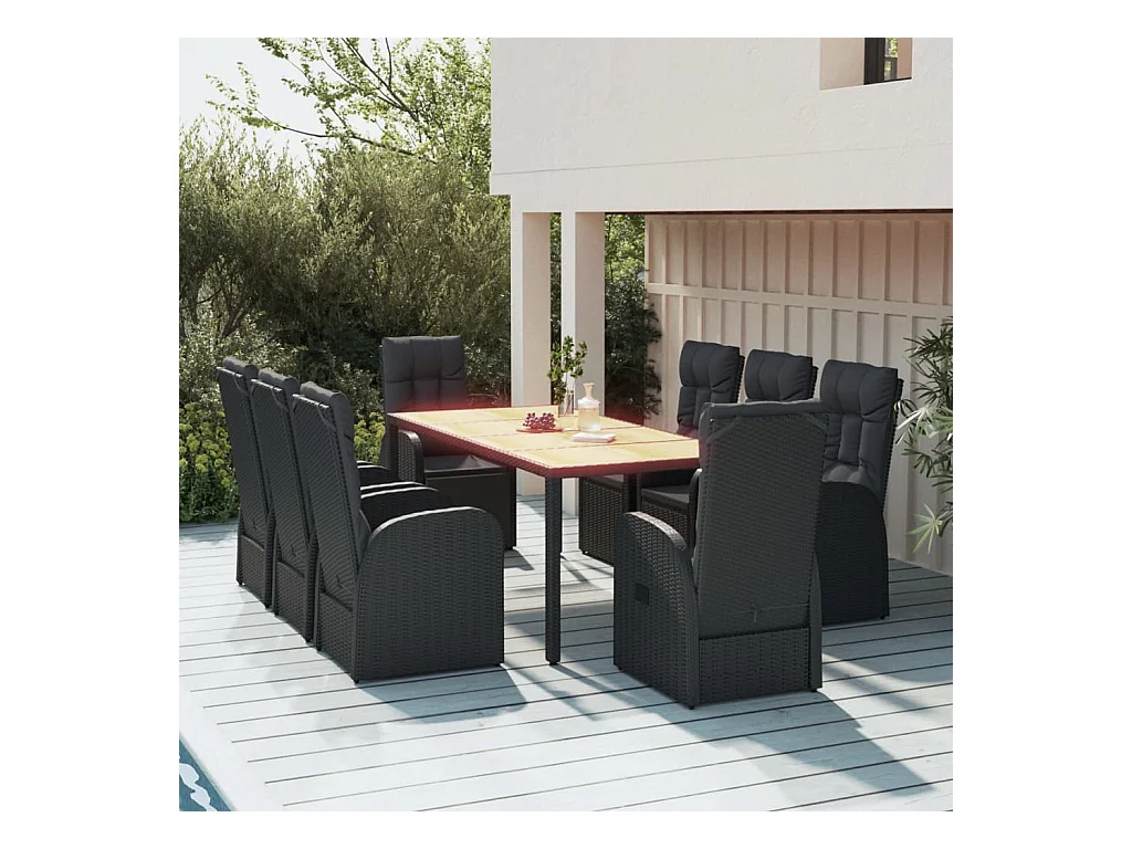 9-tlg. Garten-Essgruppe mit Kissen Schwarz Poly Rattan