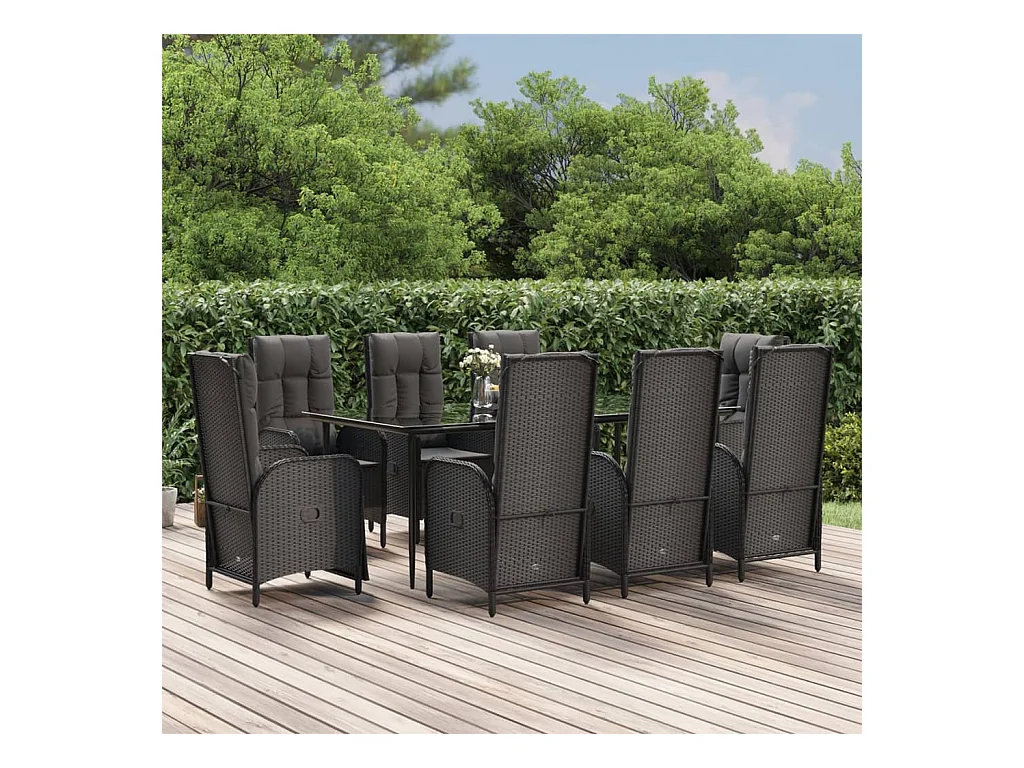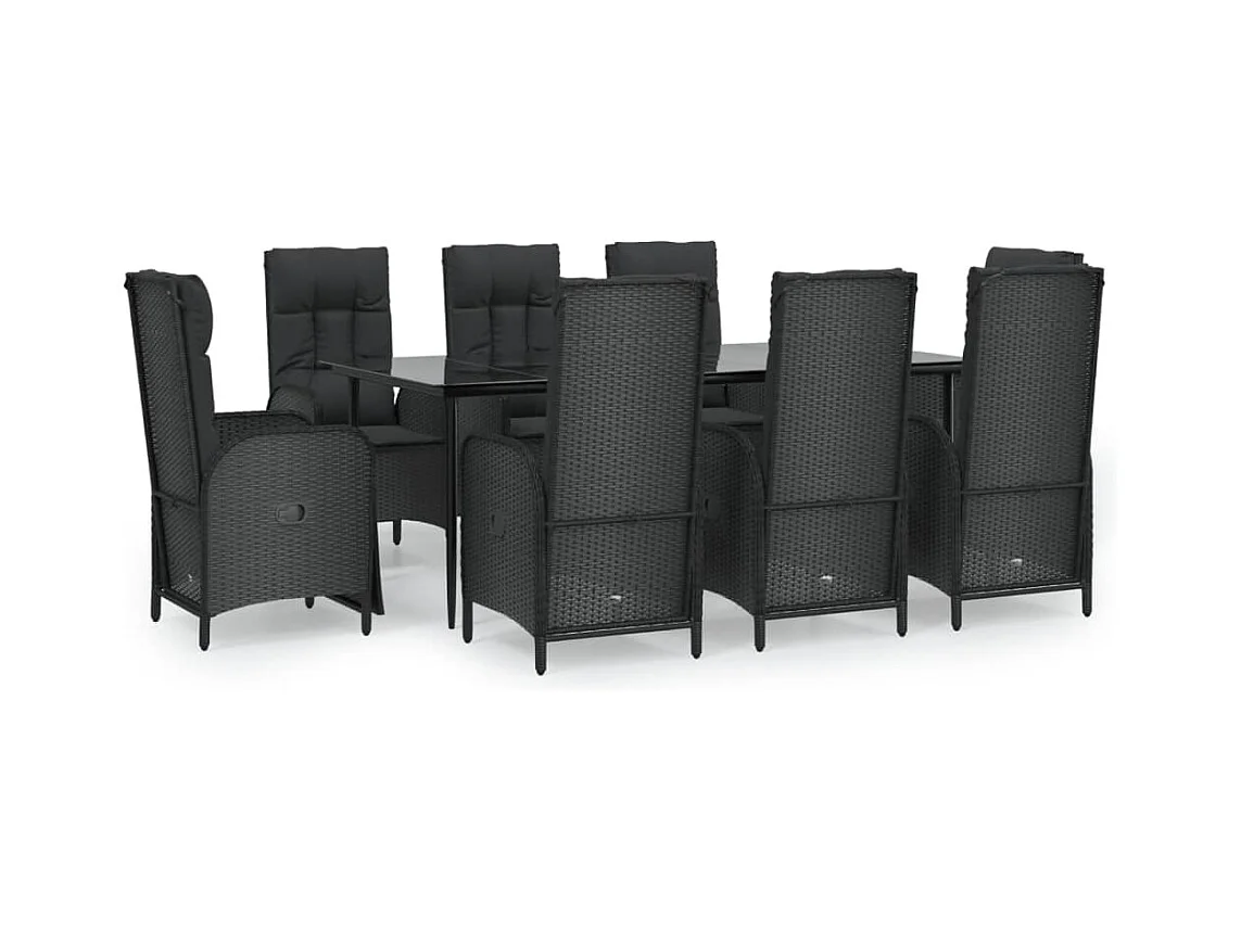 9-tlg. Garten-Essgruppe mit Kissen Schwarz Poly Rattan