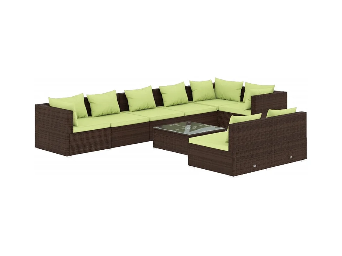 9-tlg. Garten-Lounge-Set mit Kissen Braun Poly Rattan