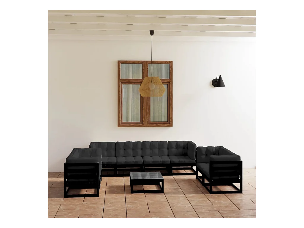 9-tlg. Garten-Lounge-Set mit Kissen Massivholz Kiefer
