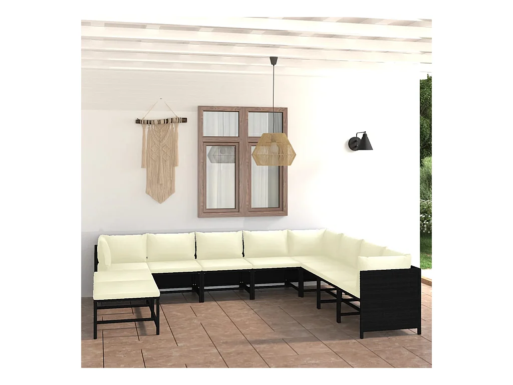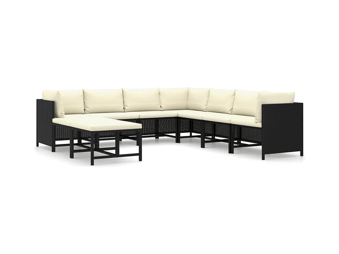 9-tlg. Garten-Sitzgruppe: Sofa + Tisch | Garten-Lounge-Set mit Kissen Poly Rattan Schwarz -GKD685996