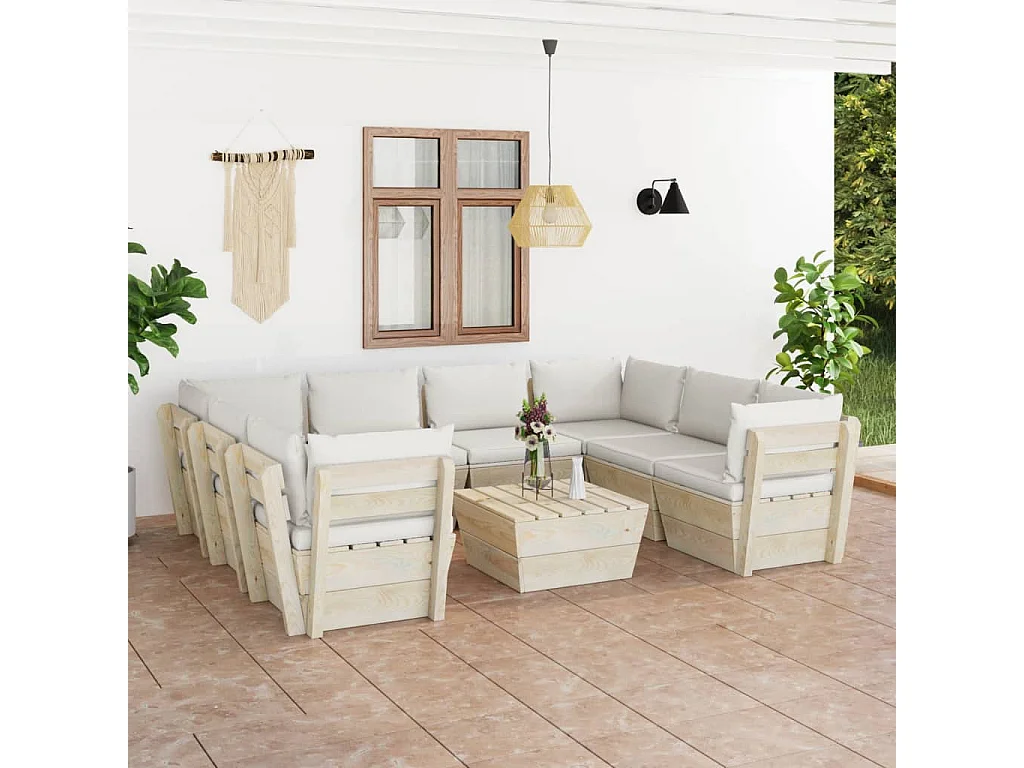 9-tlg. Garten-Sofagarnitur aus Paletten mit Kissen Fichtenholz