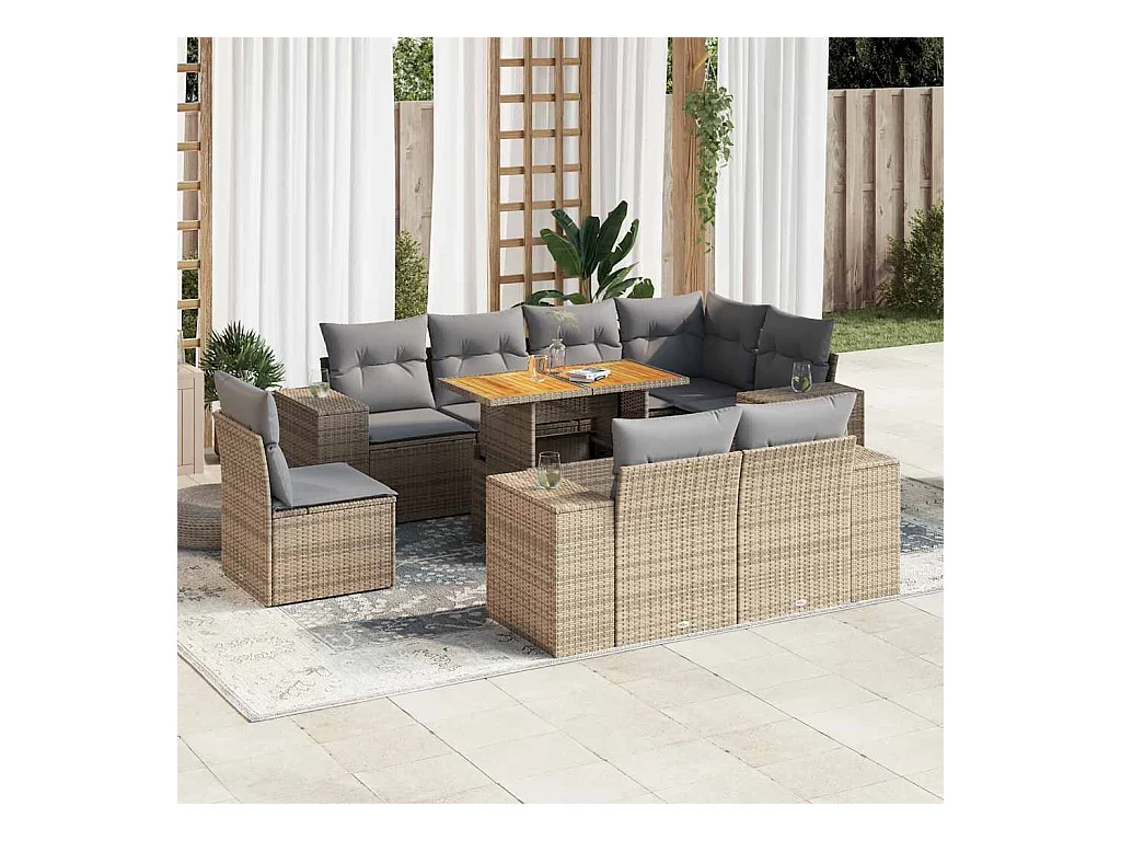 9-tlg. Garten-Sofagarnitur mit Kissen Beige Poly Rattan
