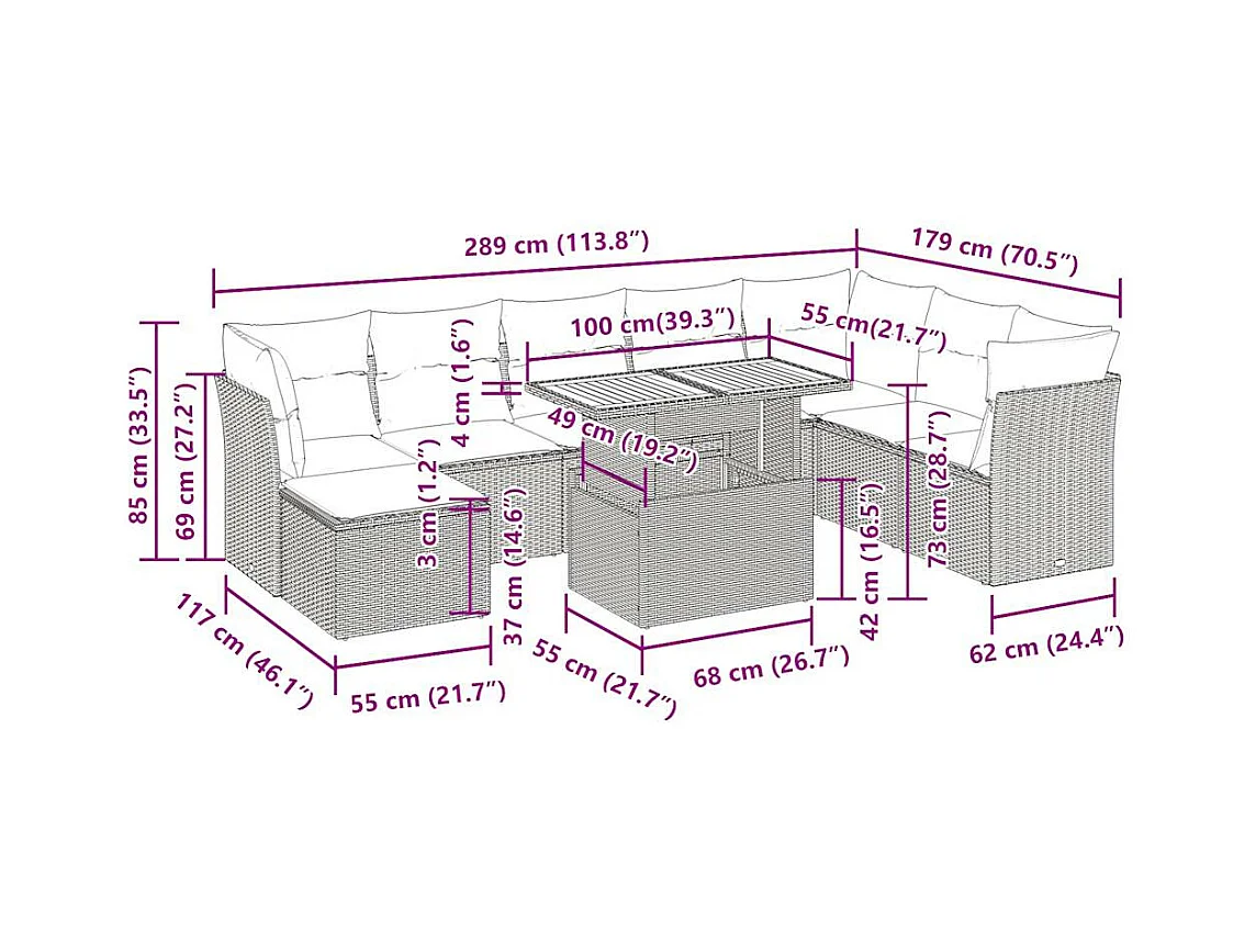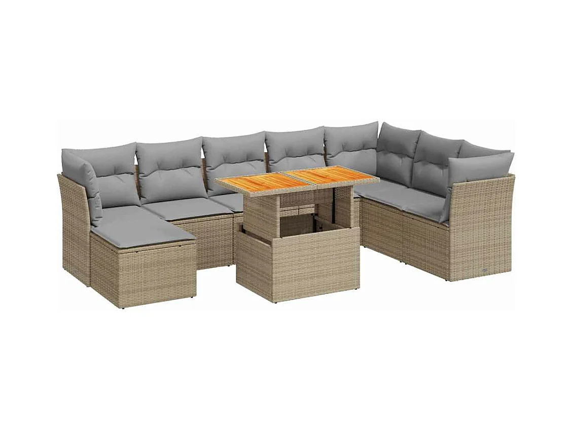 9-tlg. Garten-Sofagarnitur mit Kissen Beige Poly Rattan