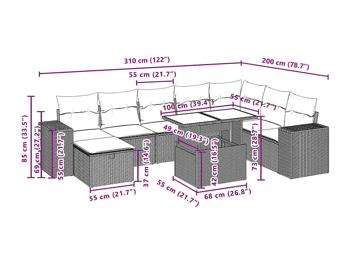 9-tlg. Garten-Sofagarnitur mit Kissen Beige Poly Rattan
