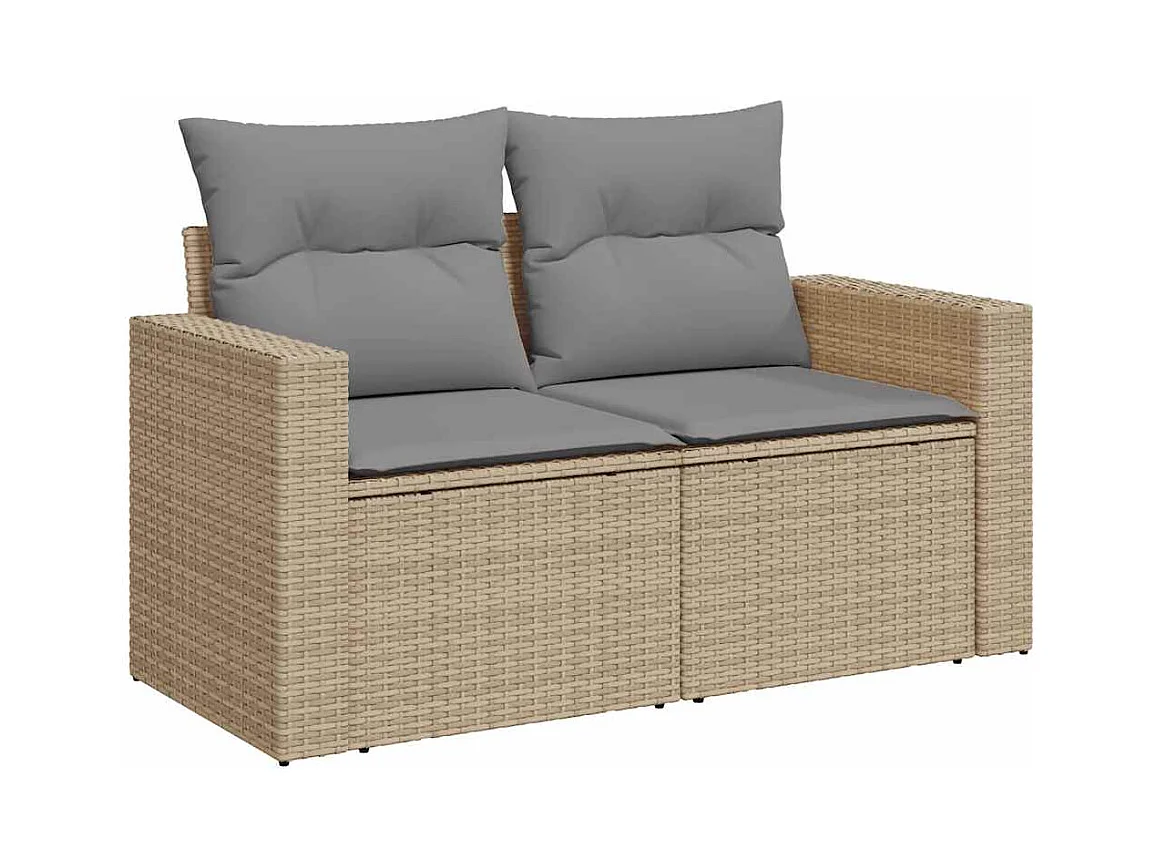 9-tlg. Garten-Sofagarnitur mit Kissen Beige Poly Rattan
