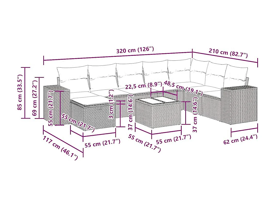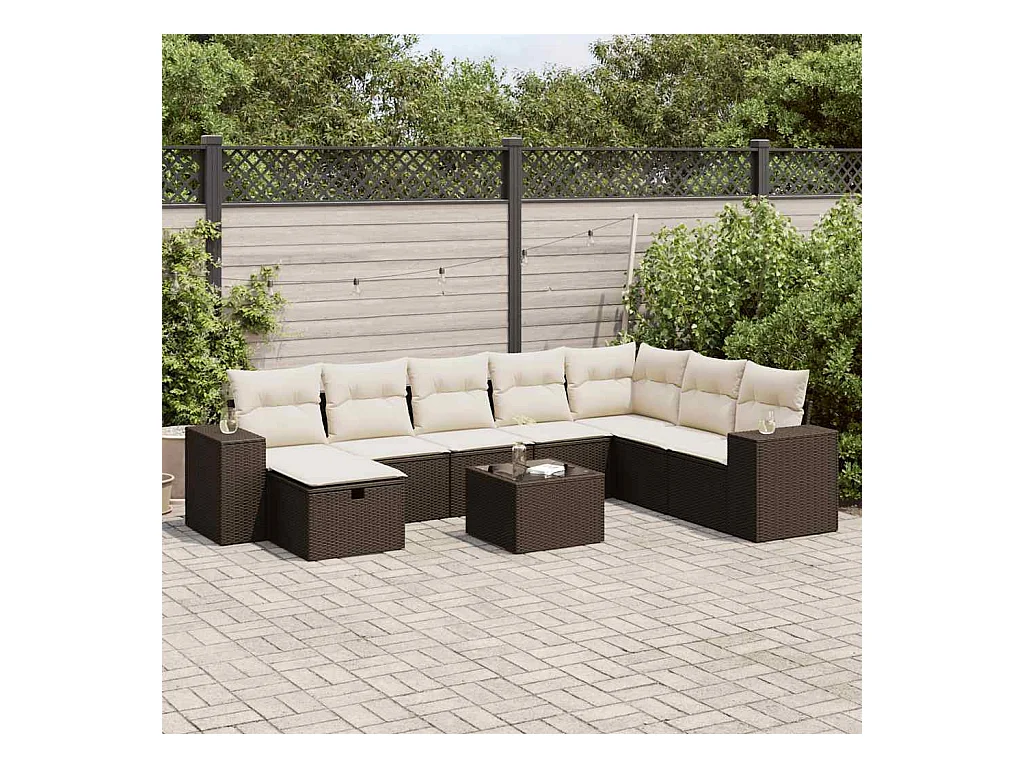 9-tlg. Garten-Sofagarnitur mit Kissen Braun Poly Rattan
