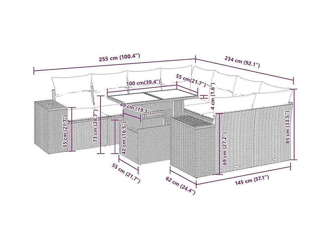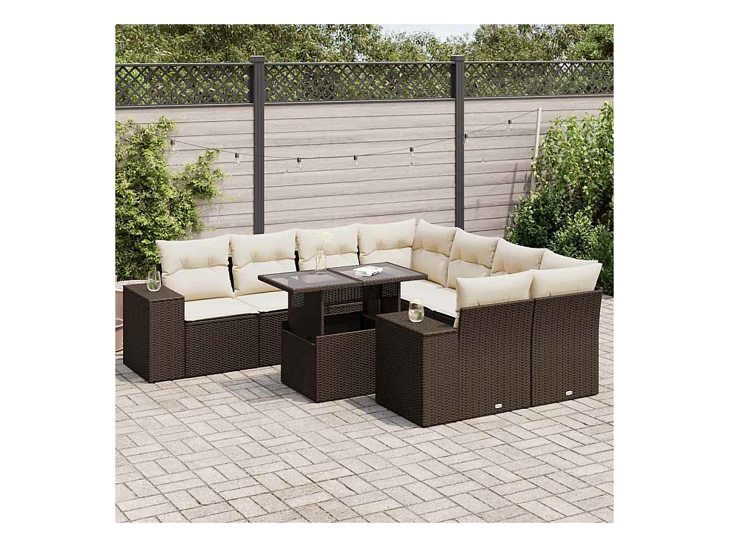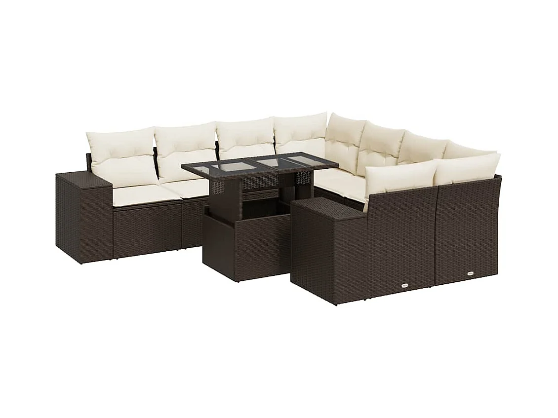 9-tlg. Garten-Sofagarnitur mit Kissen Braun Poly Rattan