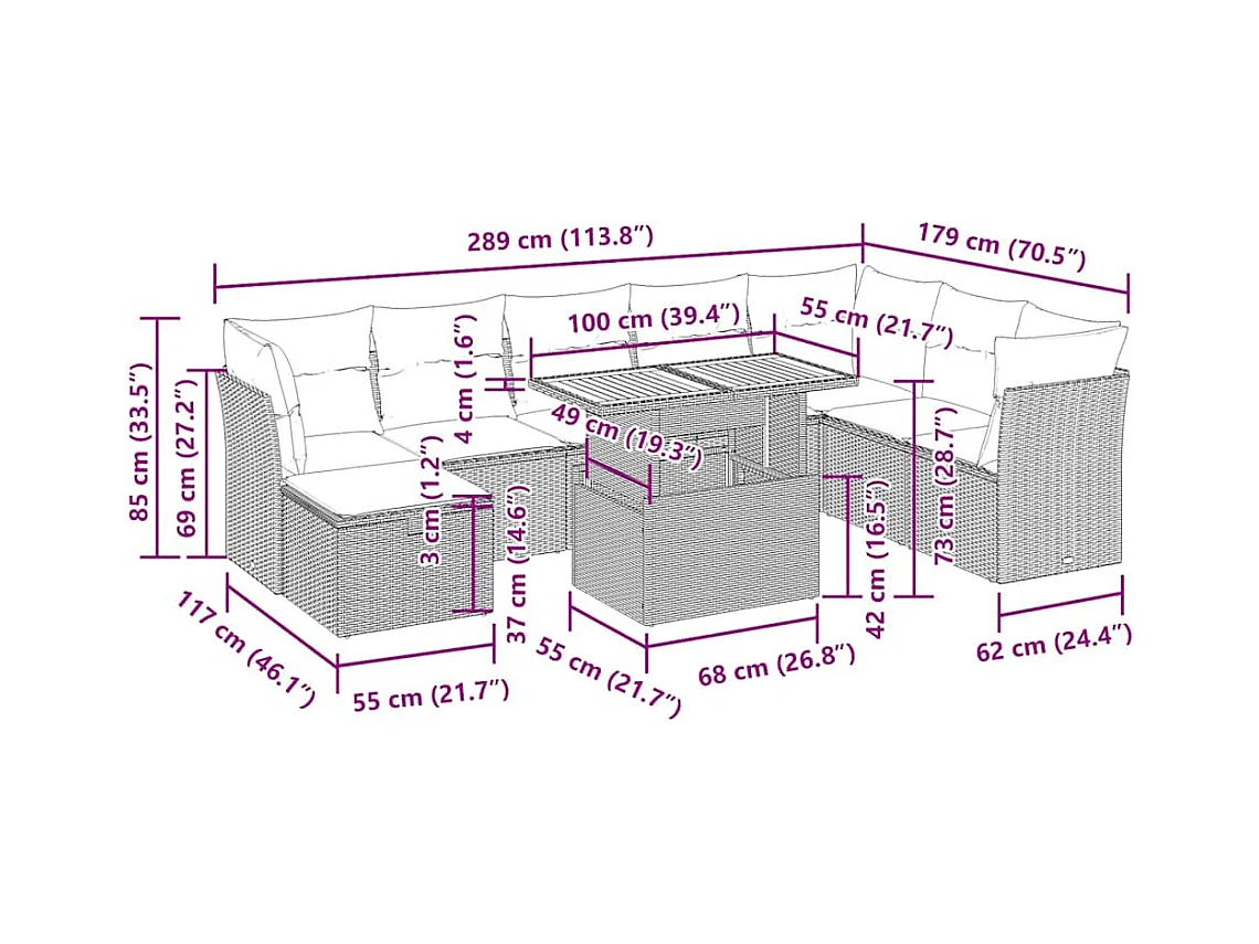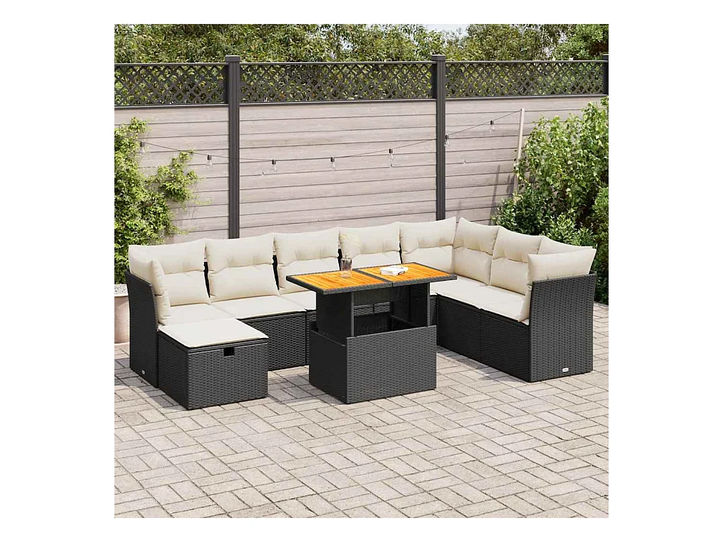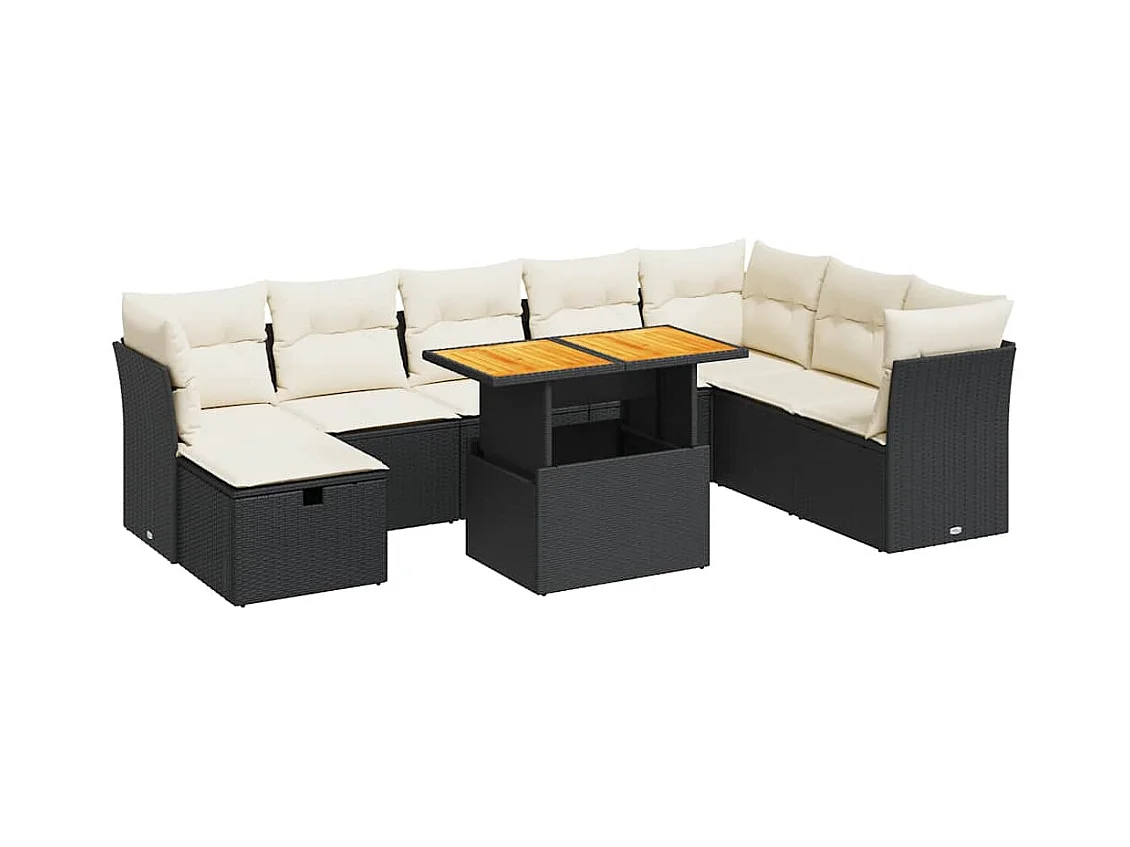 9-tlg. Garten-Sofagarnitur mit Kissen Schwarz Poly Rattan
