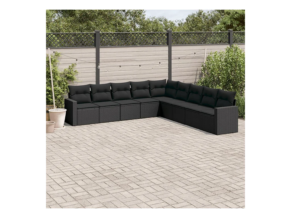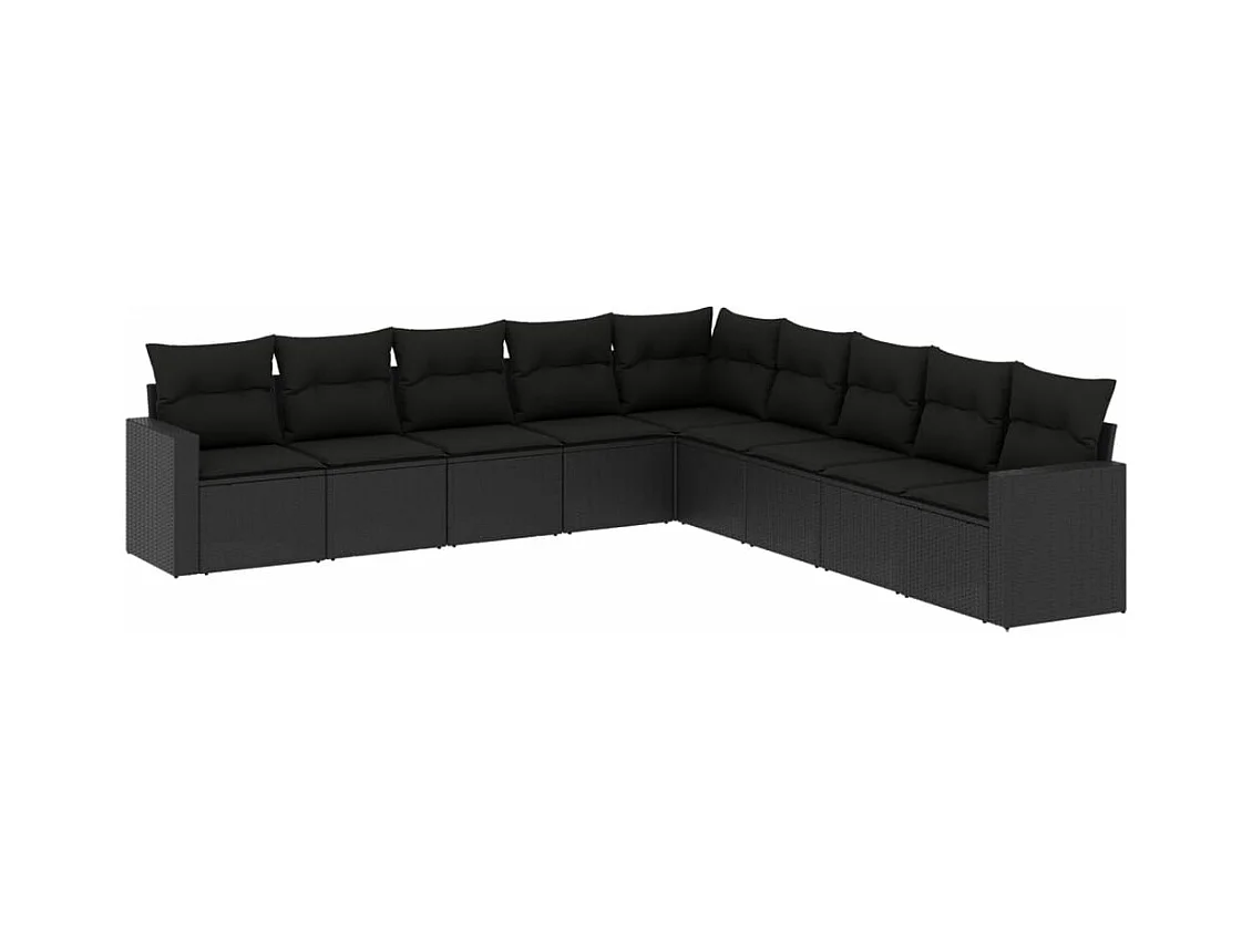 9-tlg. Garten-Sofagarnitur mit Kissen Schwarz Poly Rattan