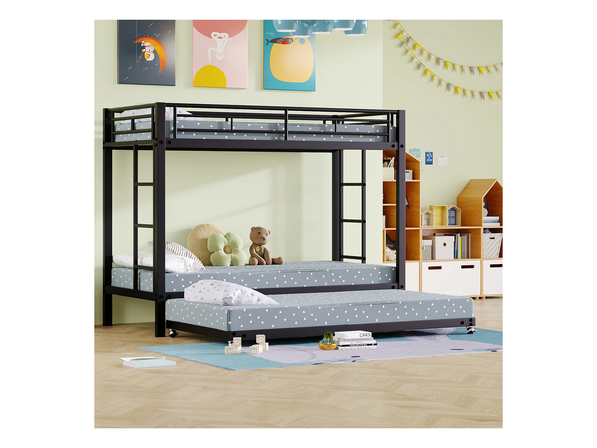 90*200cm Etagenbett, Eisenrahmenbett, Kinderbett, ausgestattet mit Ausziehbett