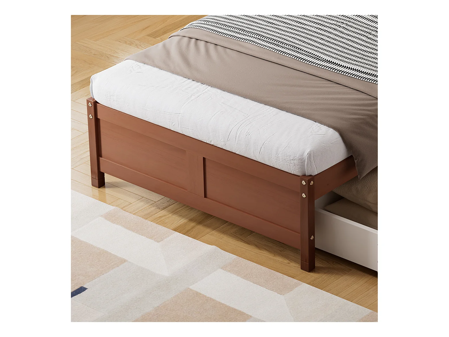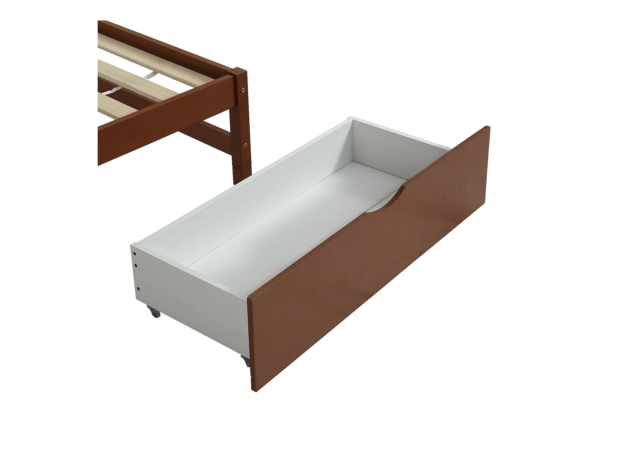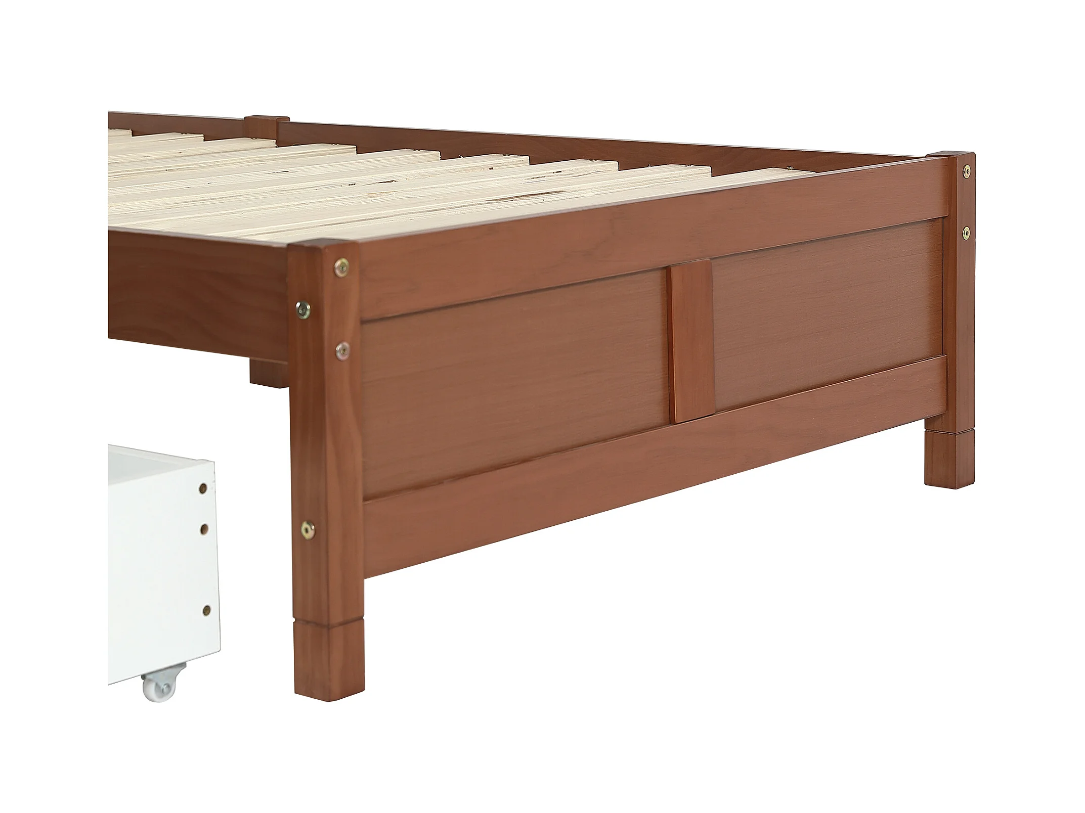 90 x 200 cm großes Holzbett – 2 Schubladen auf Rollen – mit Lattenrost – Braun